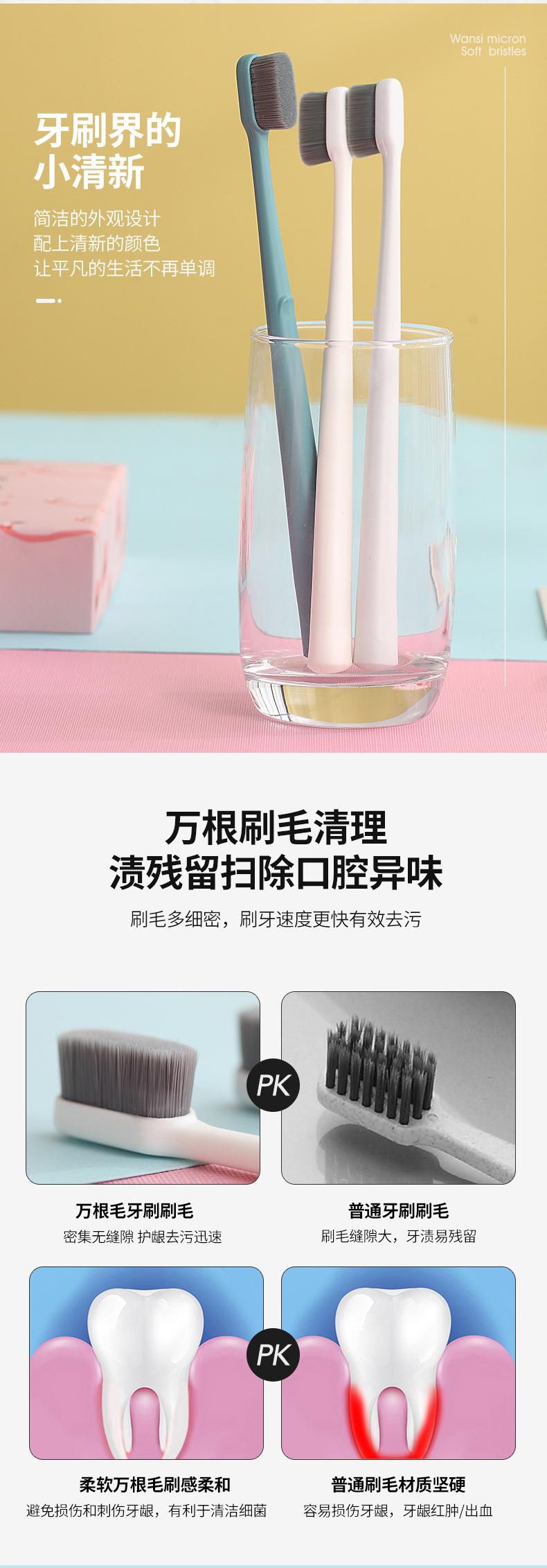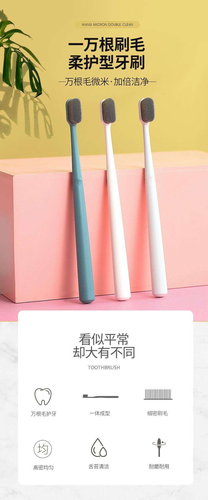 White ten thousand hair toothbrush, Grey Ten Thousand Hair Toothbrush, Green Ten Thousand Hair Toothbrush