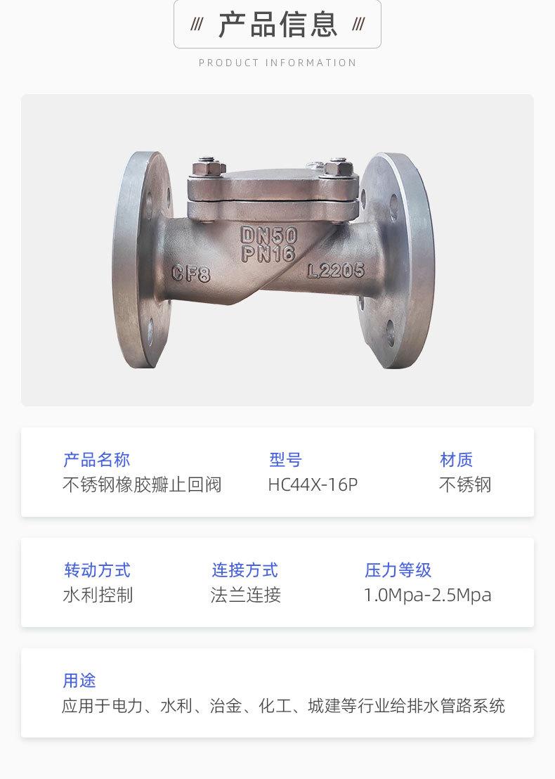 Válvula de retención H44X-16P de acero inoxidable con aleta de goma, especificaciones de la válvula de retención 304, directa de fábrica
