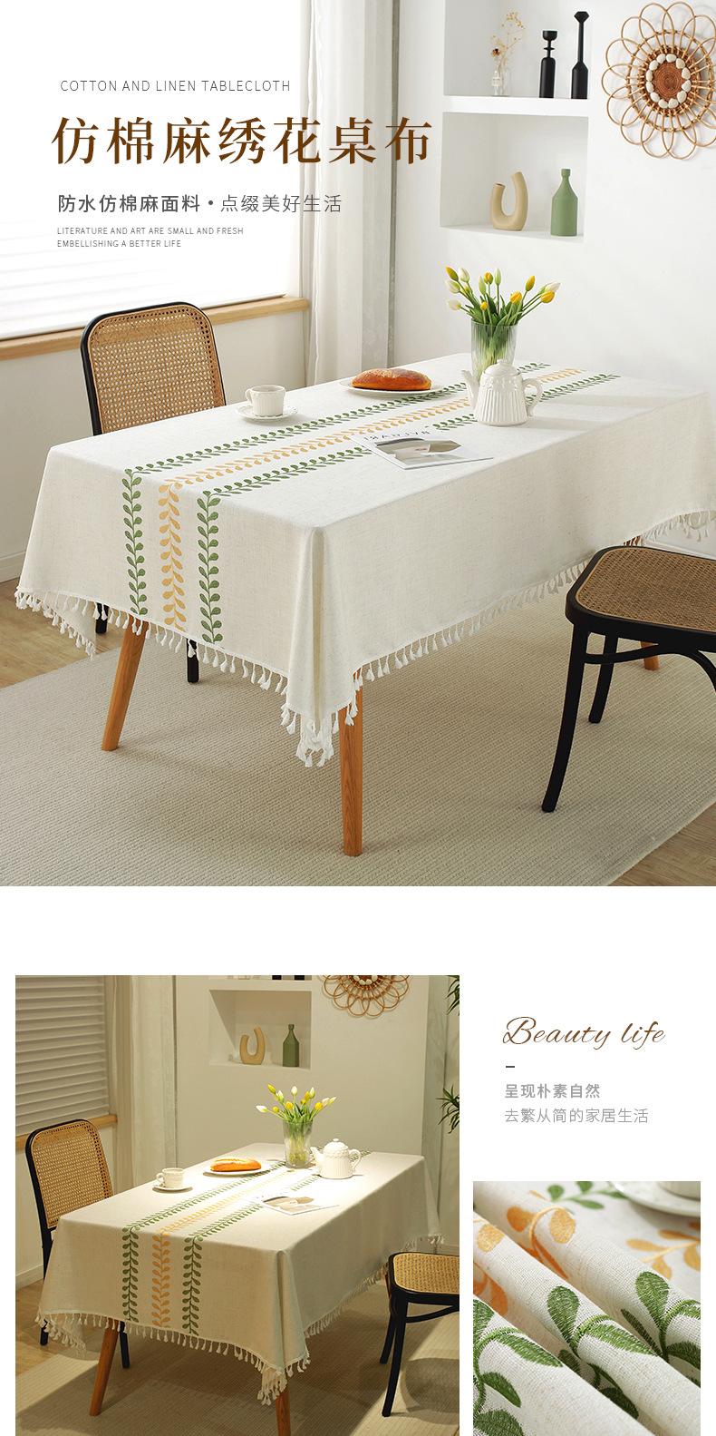Mantel Bordado de Imitación Algodón y Lino Mantel Rectangular Impermeable y a Prueba de Aceite Moderno Simple Mantel de Mesa de Café Mantel de Encaje