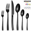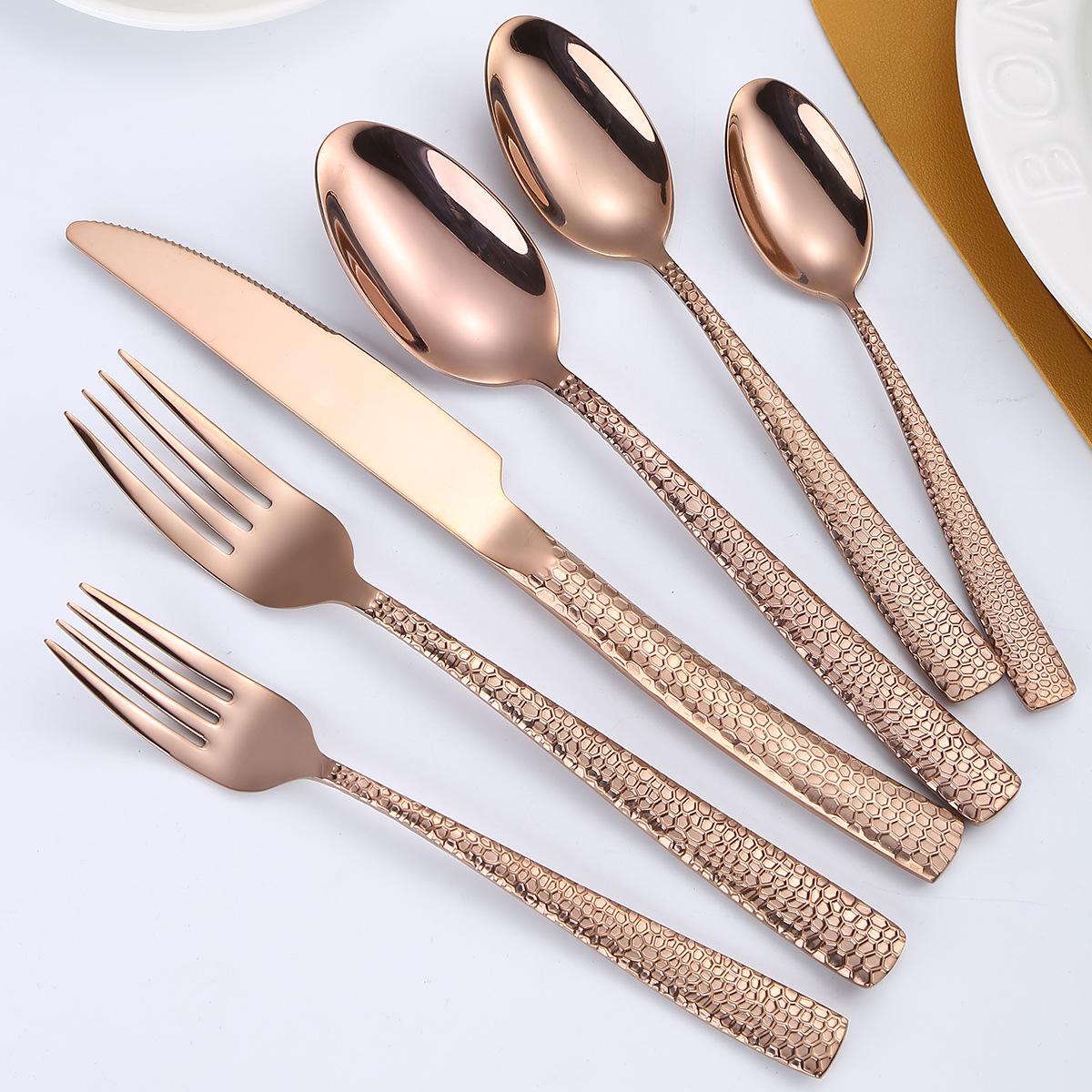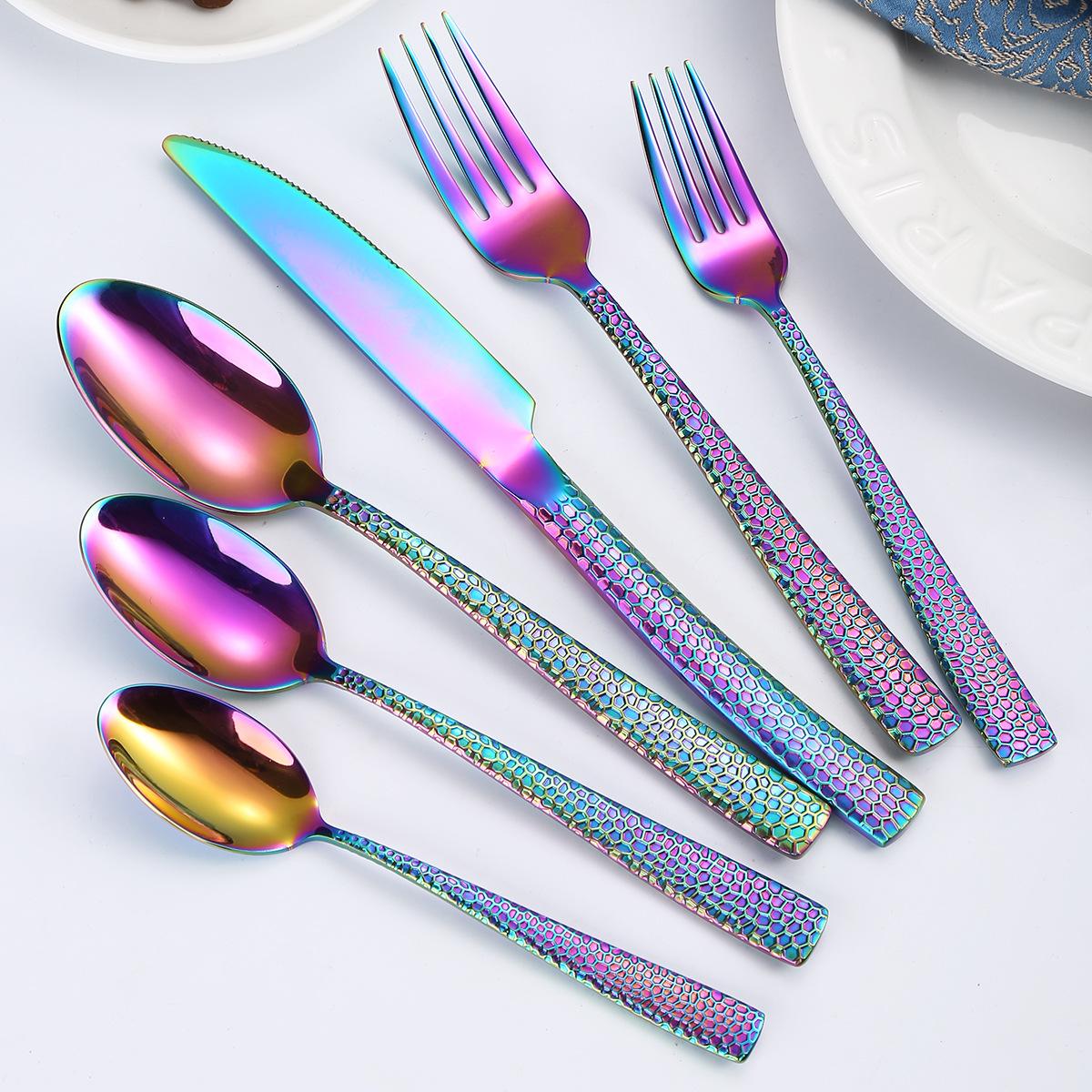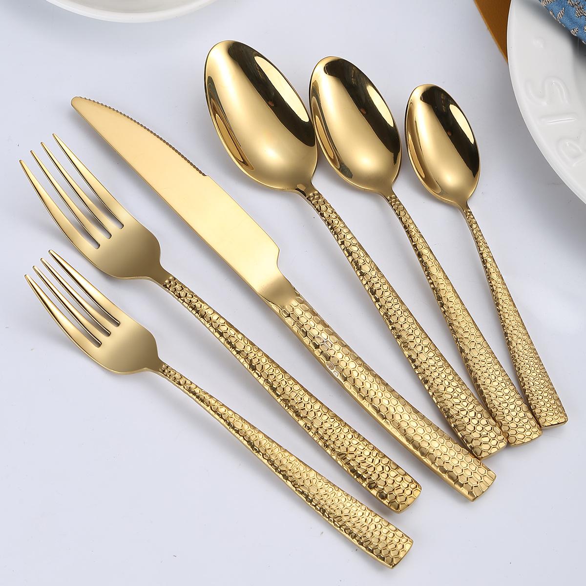 Nuevo juego de vajilla de acero inoxidable de Amazon, cuchillo, tenedor y cuchara, mango cuadrado, chapado en titanio dorado, vajilla occidental, cuchillo y tenedor para carne.