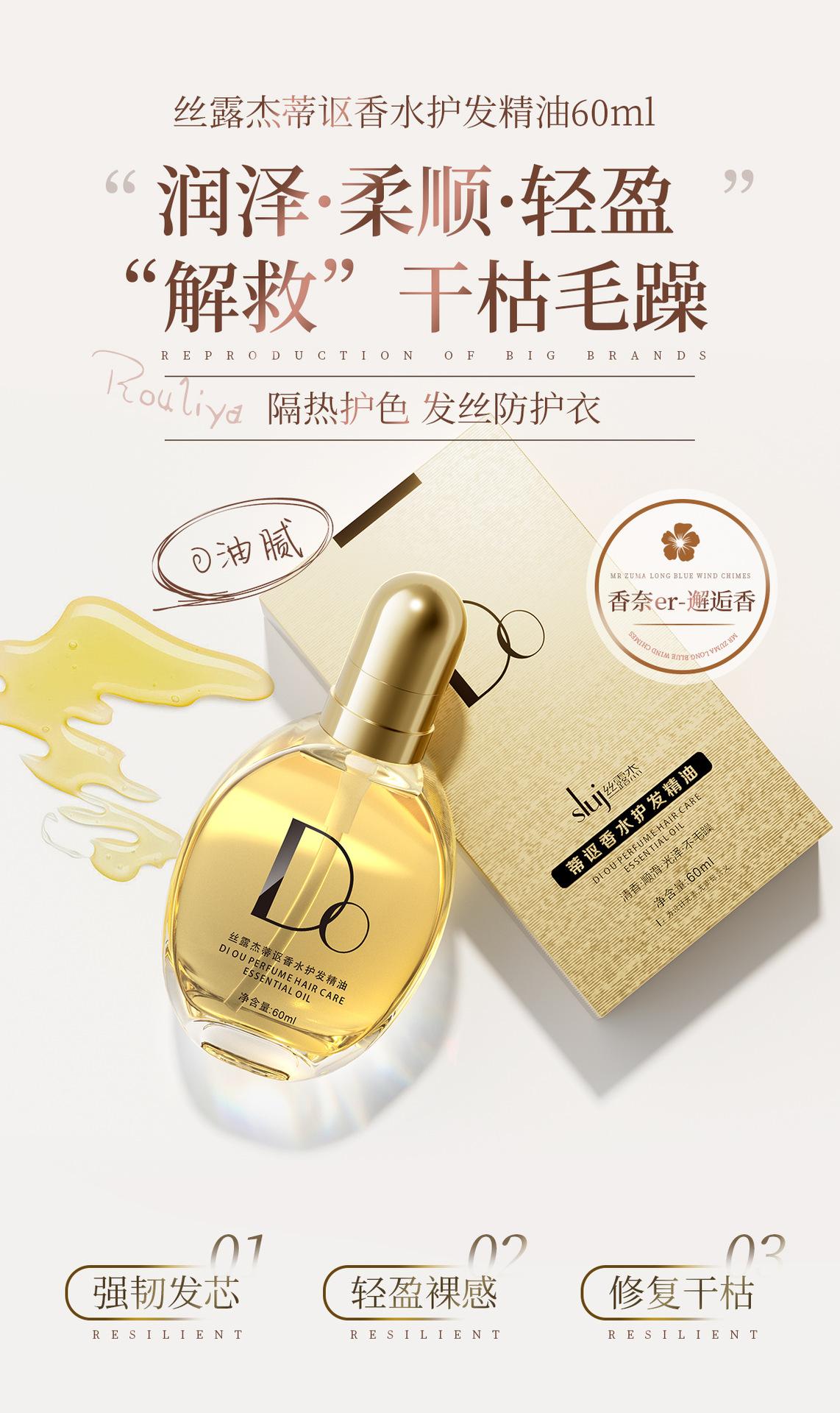 Perfume Seda Lujedi Cuidado del Cabello Aceite Esencial Fábrica Dropshipping Distribución Transmisión en Vivo 60ml