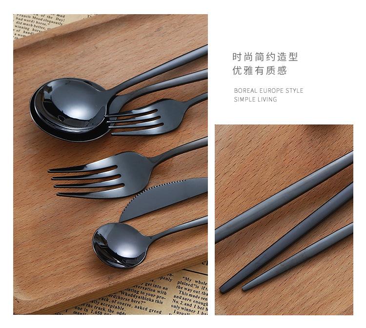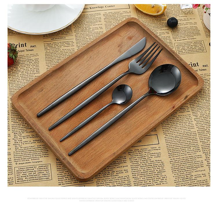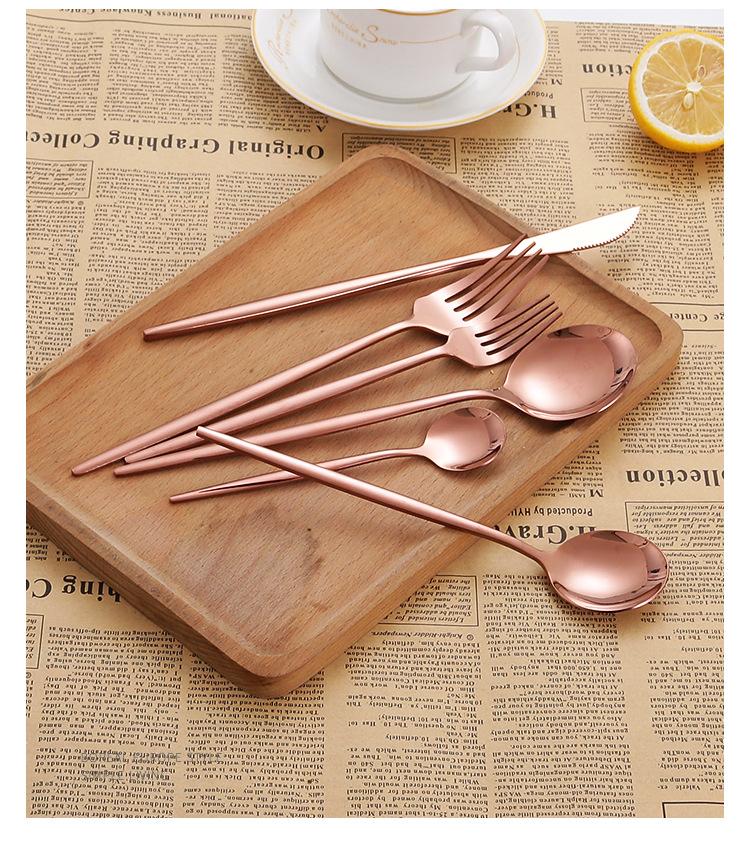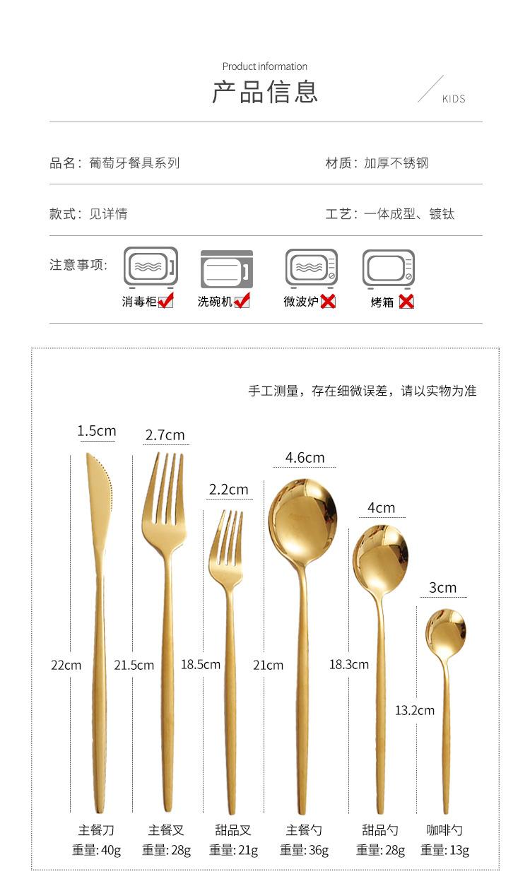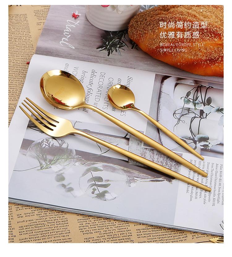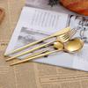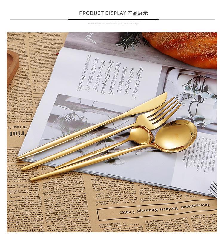 Vajilla de Acero Inoxidable Baichuan Cuchillo y Tenedor para Bistec Brillante Portugués Seis Piezas Cuchara Tenedor para Postre Cuchara para Café Dorada
