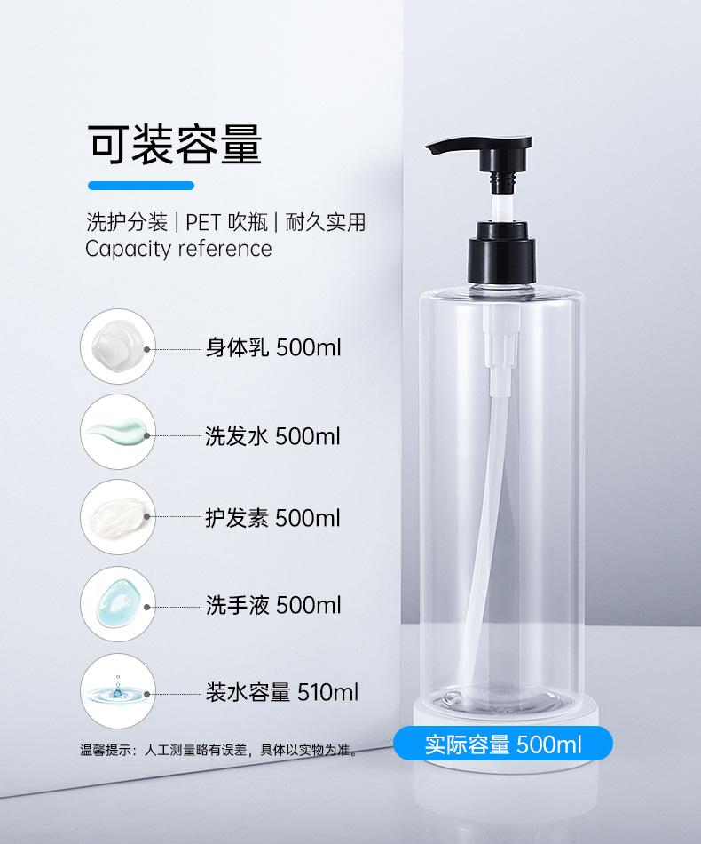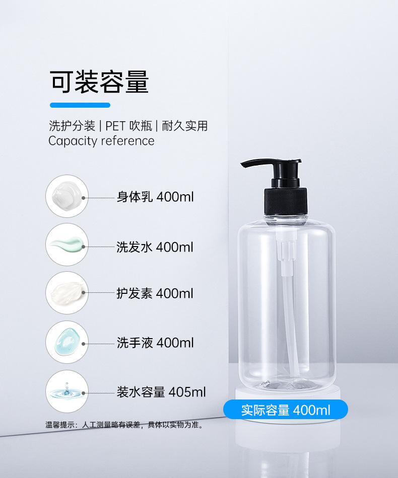 500ml transparent bottle + white pump head, 500ml transparent bottle + black pump head, 400ml transparent bott...