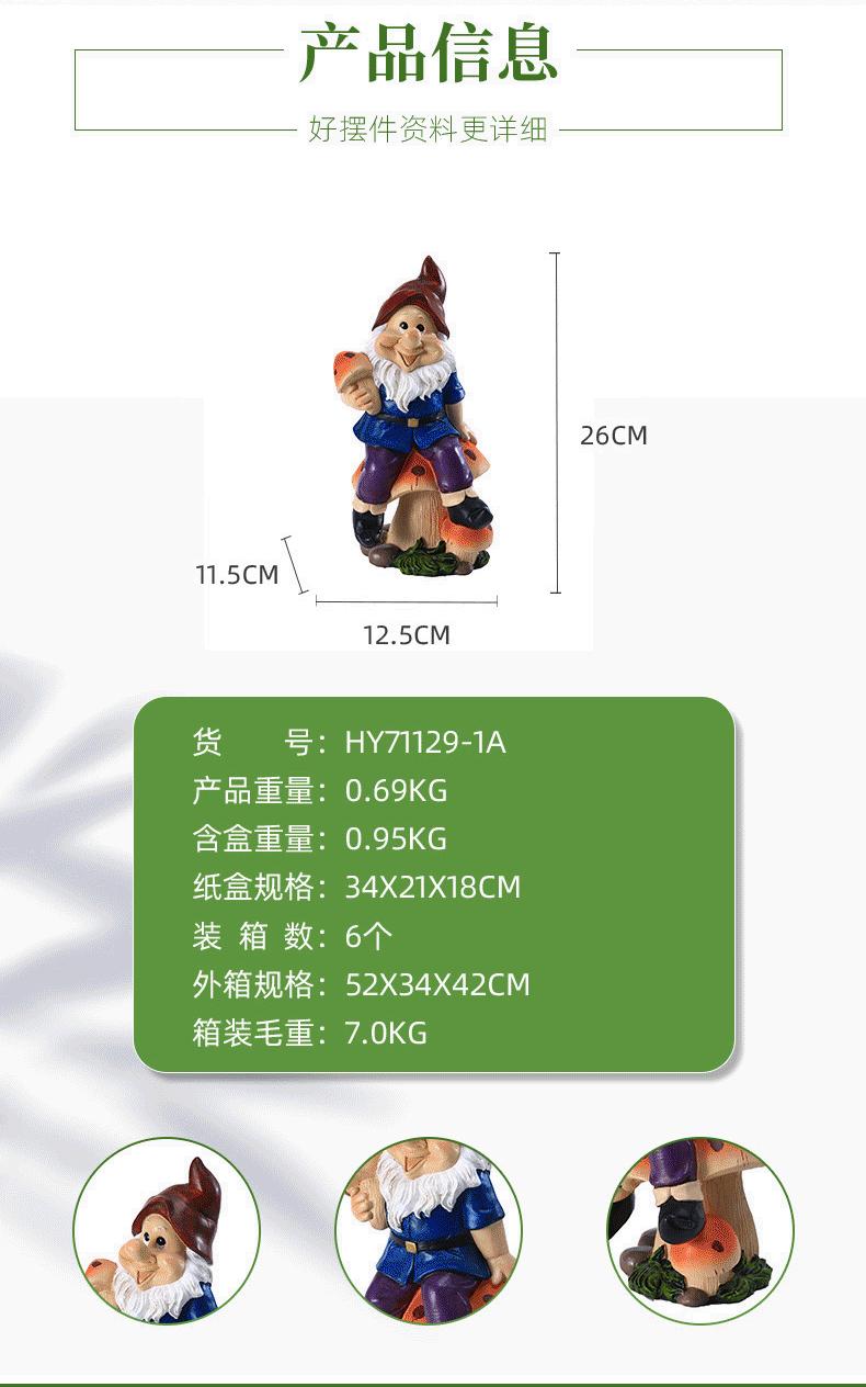 Proveedor Transfronterizo 26cm Adornos de Enano de Hongo de Jardín Decoración Exterior Regalo de Cumpleaños Artesanías de Resina