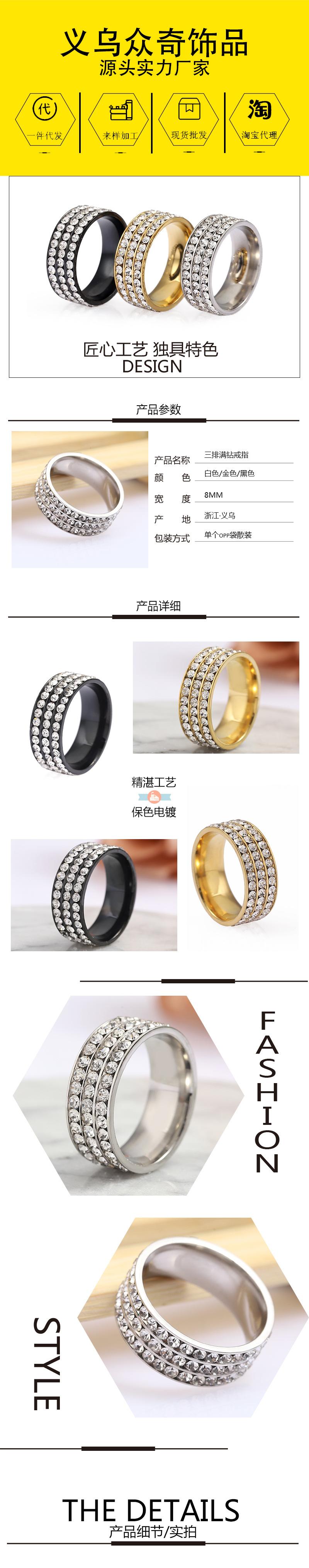 Suministro transfronterizo entre Europa y Estados Unidos de anillo de acero de titanio para mujer, anillo de pareja de diamantes de moda de nicho, tres filas de joyería de acero inoxidable