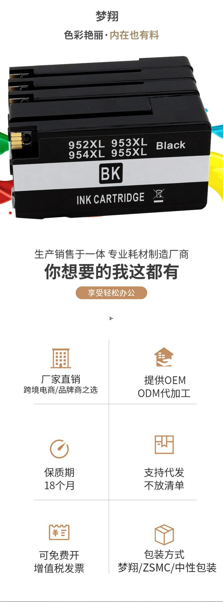 Recordatorio cálido: Dado que los siguientes modelos son adecuados para diferentes regiones, son aplicables diferentes modelos de cartuchos de tinta. Por favor, confirme si su cartucho de tinta original coincide con el modelo antes de realizar el pedido, o consulte al servicio de atención al cliente para proporcionar el modelo que necesita. Si pide el modelo incorrecto, no realizaremos reembolsos ni cambios. Gracias por su cooperación. Marca: Mengxiang Compatible con modelos de cartucho de tinta: cartucho de tinta HP952 HP956XL Compatible con cartuchos: HP 952XLBK (F6U19AN) HP 956XLBK (L0R39AN) HP 952XLC Aplicable a la impresora: HP OfficeJet Pro 7740/ 8210/8216/8710/ Color: Negro (Negro) Azul (Cian) Rojo (Magenta) Amarillo (Amarillo) Capacidad de tinta: BK 50ML CMY 26ML cada uno Ofrecemos procesamiento OEM, gran cantidad y precio favorable. Vida útil: 2 años Embalaje: bolsa de vacío o caja de color. Servicio posventa: Este producto es un consumible compatible. Si presenta algún problema de calidad, puede devolverlo o cambiarlo. Los gastos de envío de la devolución correrán a cargo de nuestra empresa. Nuestra fábrica procesa principalmente cartuchos de tinta compatibles con Epson, Brother, Kodak, Canon, Lexmark y HP, y también realiza procesamiento OEM. Podemos negociar grandes cantidades y precios favorables. Este producto ha sido completamente probado en fábrica y su tasa de defectos se controla en un 0,04 %. Si, por desgracia, compra un cartucho de tinta defectuoso, le ofrecemos devoluciones gratuitas en un plazo de 7 días a partir de la recepción del producto. Si hay algún problema de calidad, los devolveremos o cambiaremos. Proporcionamos procesamiento OEM y cartuchos de tinta compatibles nuevos. |