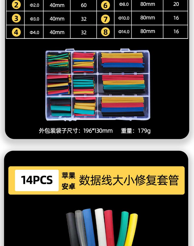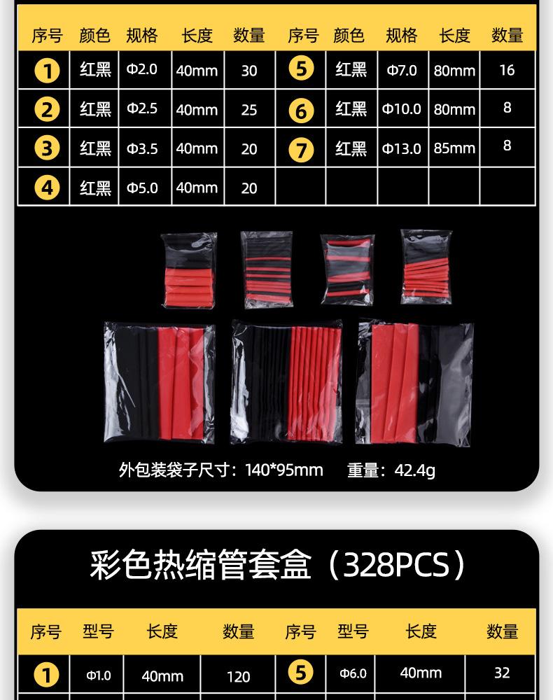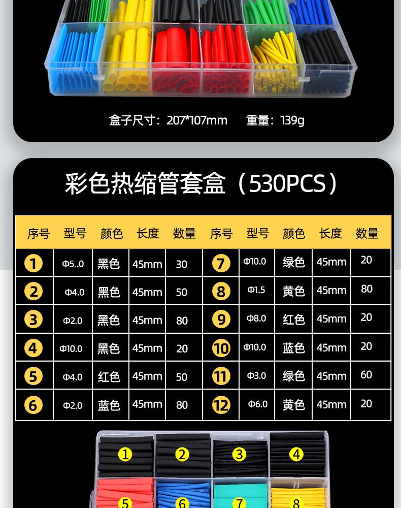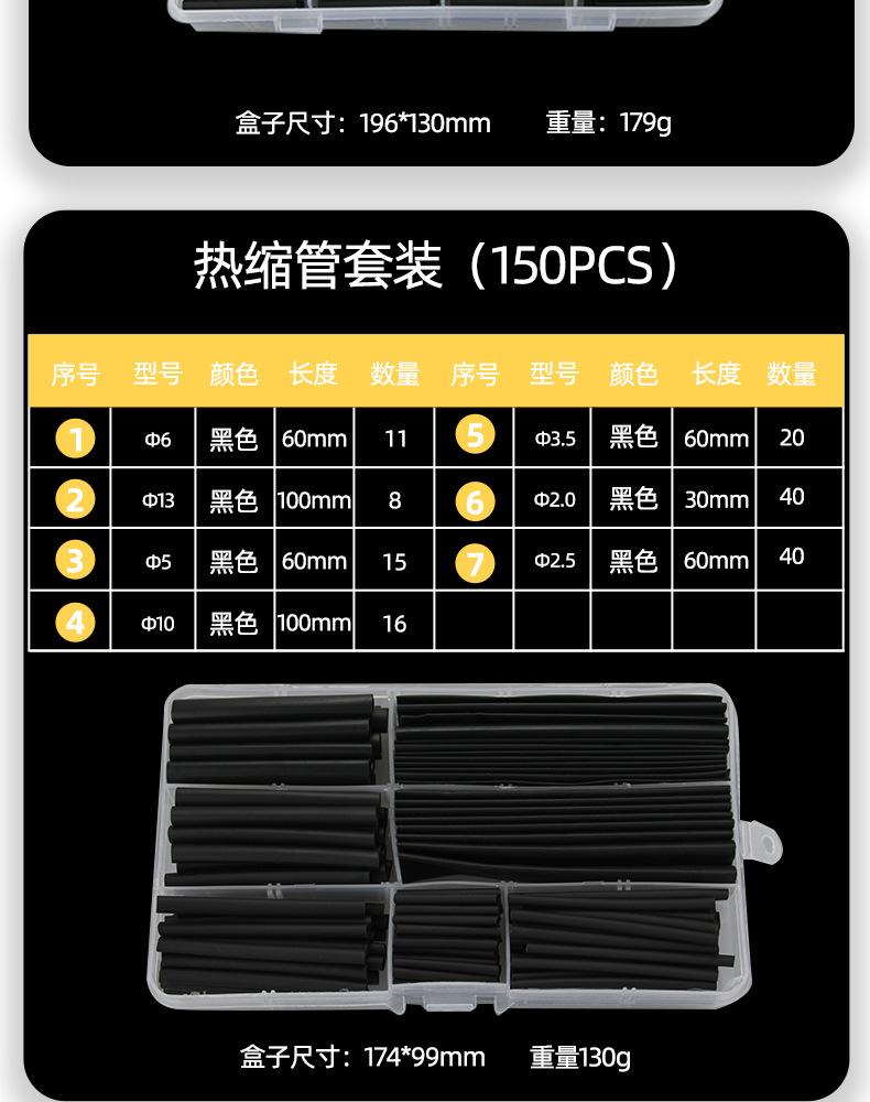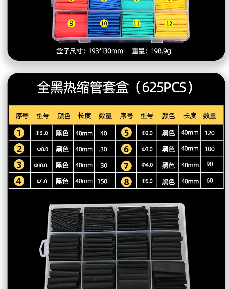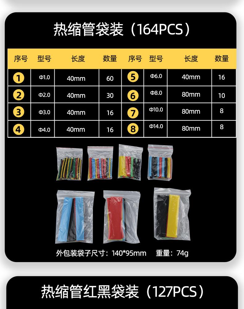 Color Heat Shrinkable tube kit (280PCs), Color Heat Shrinkable tube kit (530PCS), All Black Heat Shrinkable tu...