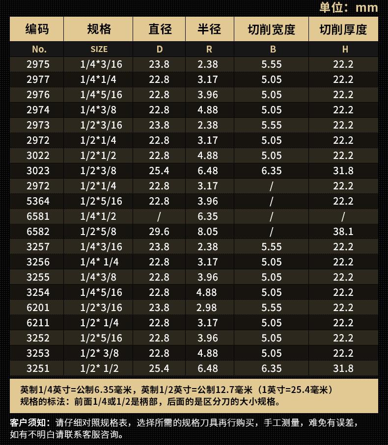 Professional grade one line knife 1/4*3/16, Professional grade one line knife 1/4*1/4, Professional grade one ...
