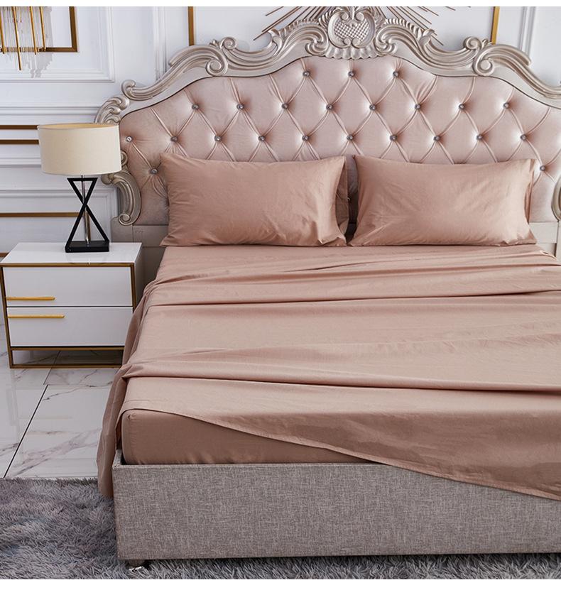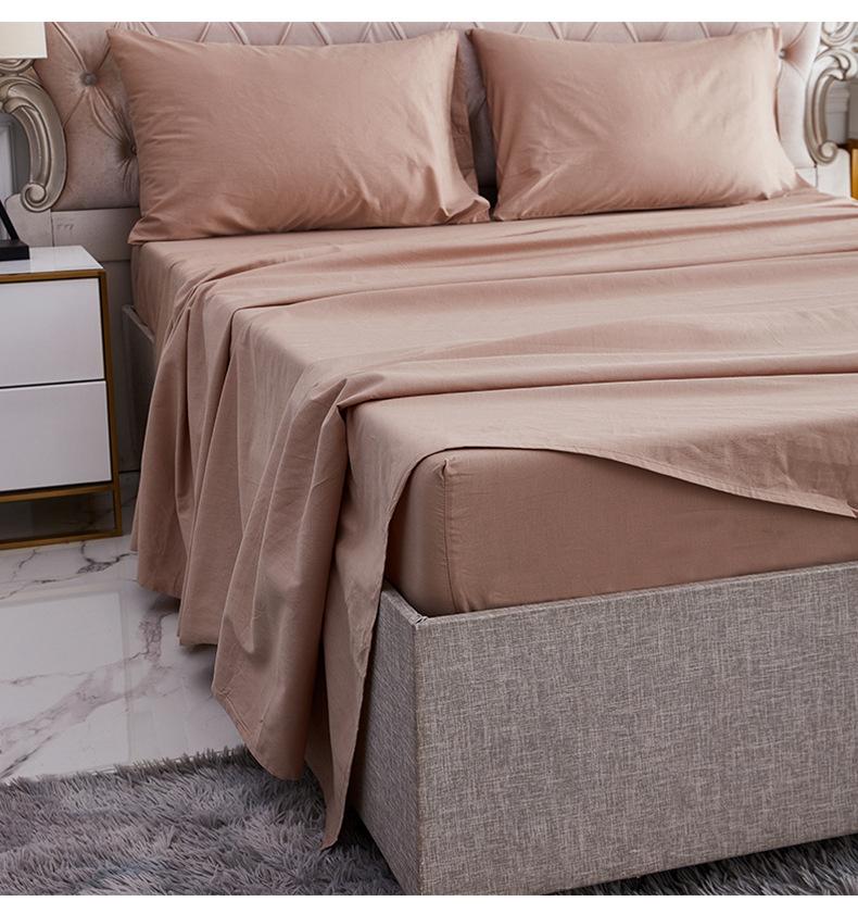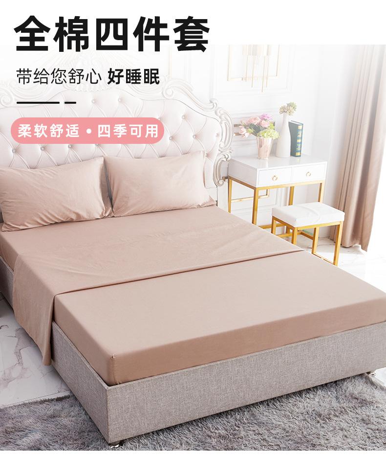 Amazon Transfronterizo 100% Algodón Liso Algodón Juego de Sábanas de Cuatro Piezas para Cama, Sábanas Ajustables, Funda de Almohada, Funda de Edredón, Personalización de Juego de Cama