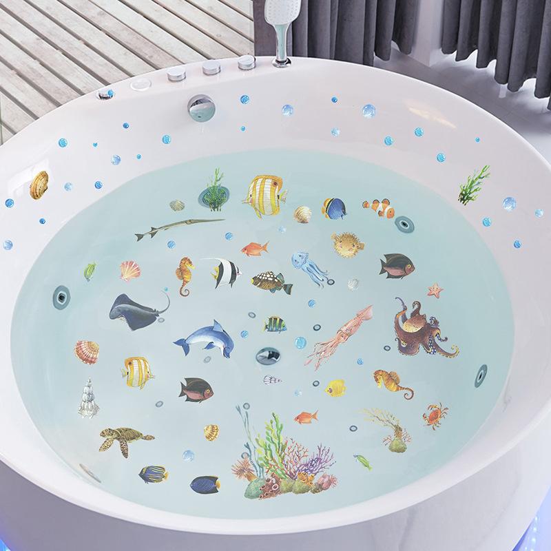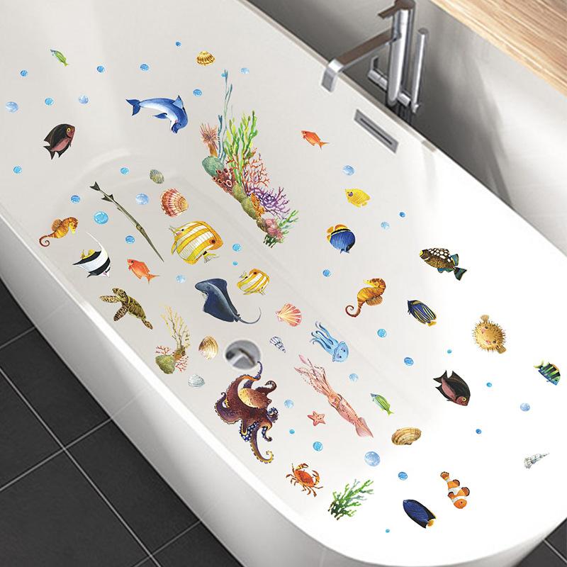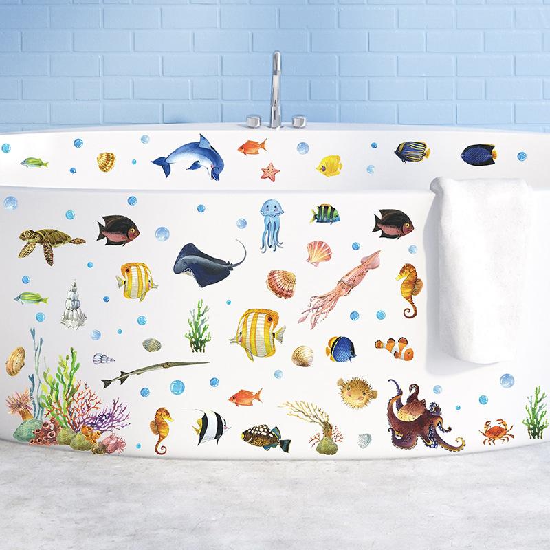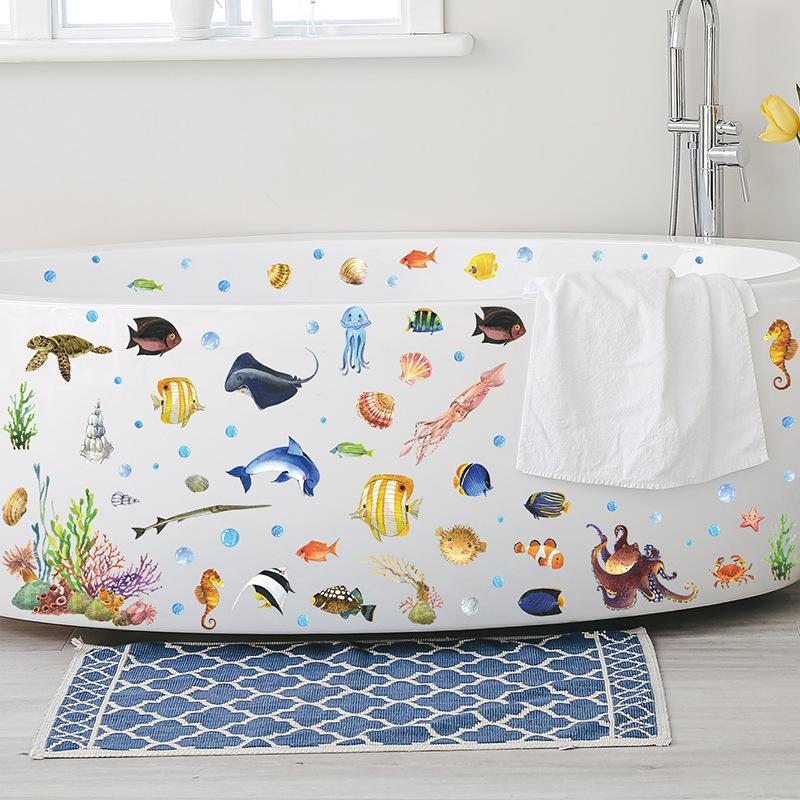FX7565 Dibujos animados de animales marinos, baño, bañera, pared, fondo, decoración, pegatina de pared extraíble