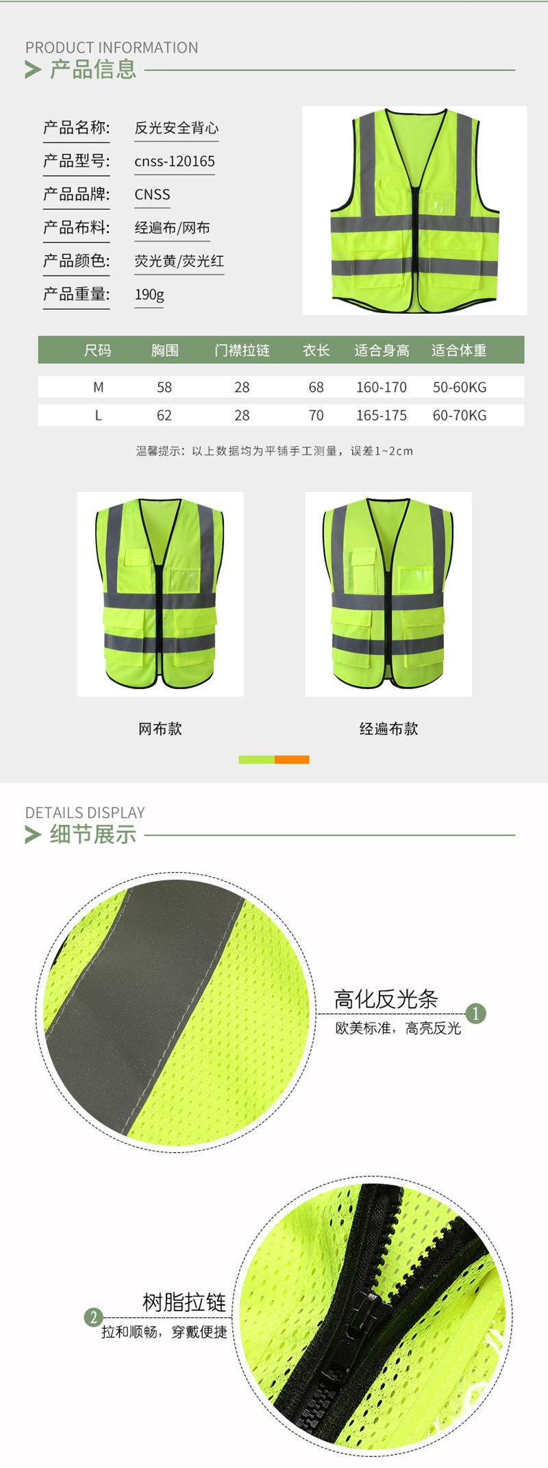 Low elastic silk * fluorescent red L * high brightness chemical fiber reflective strip * mesh vest