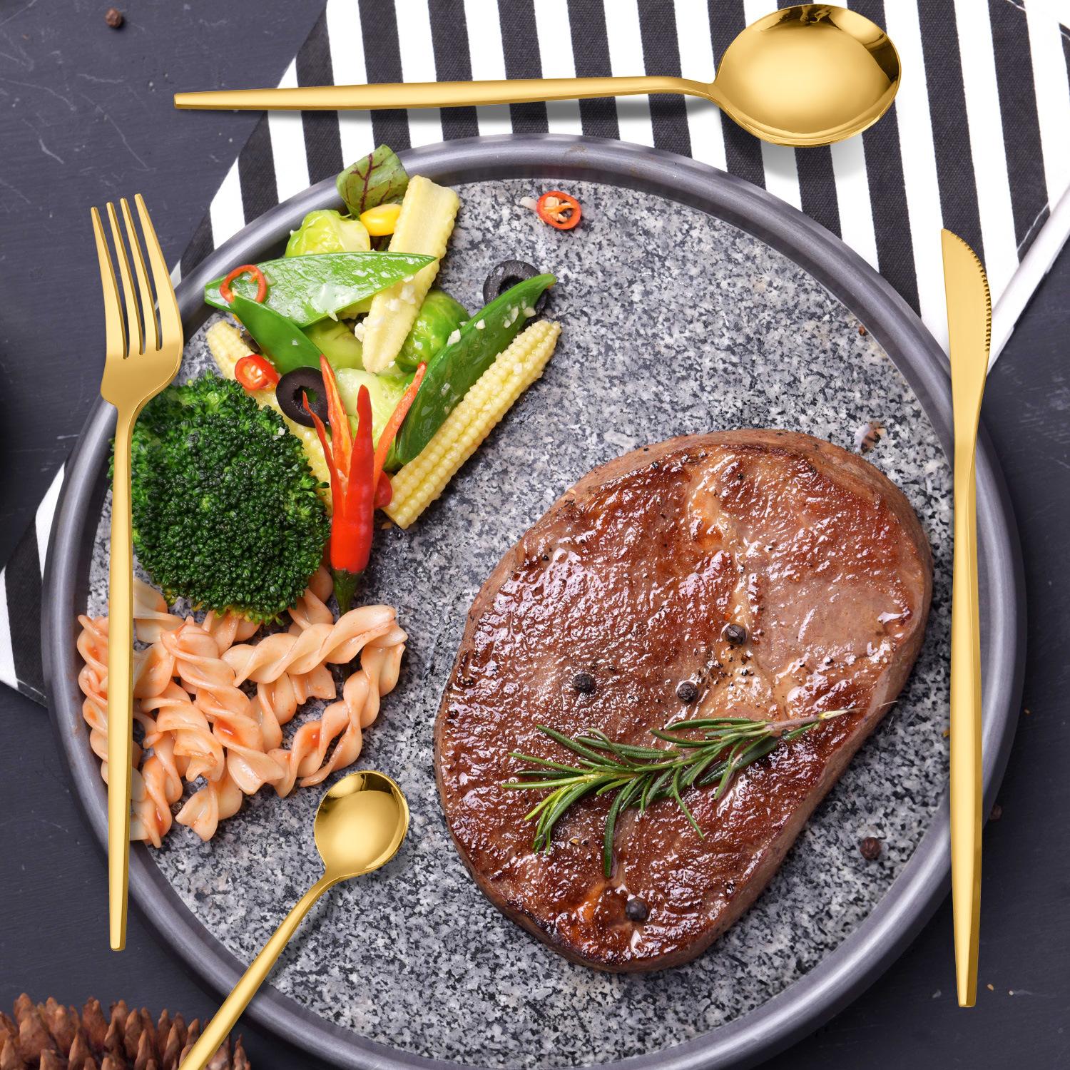 Suministro Directo de Fábrica Cubiertos Occidentales de Acero Inoxidable Cuchillo, Tenedor y Cuchara Juego de 24 Piezas Juego de Caja de Regalo de Cubiertos Portugueses Chapados en Oro Transfronterizo