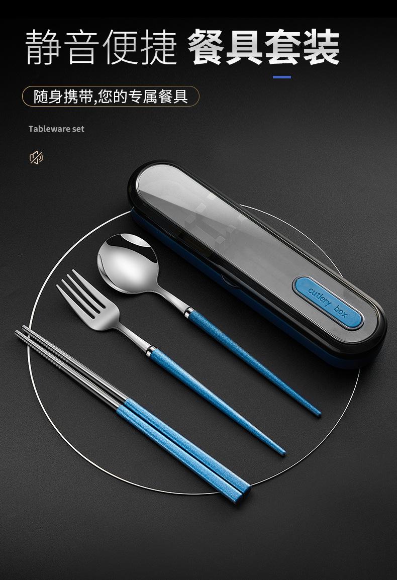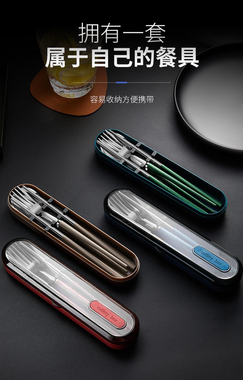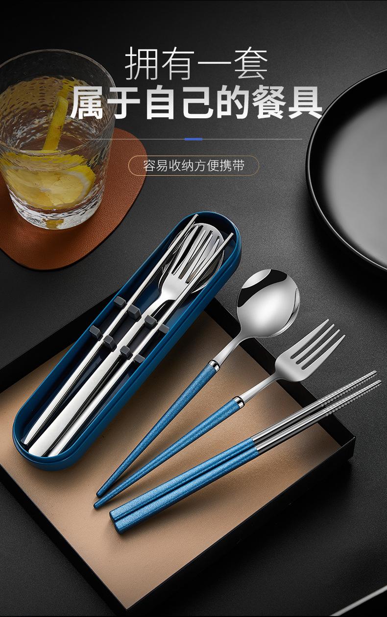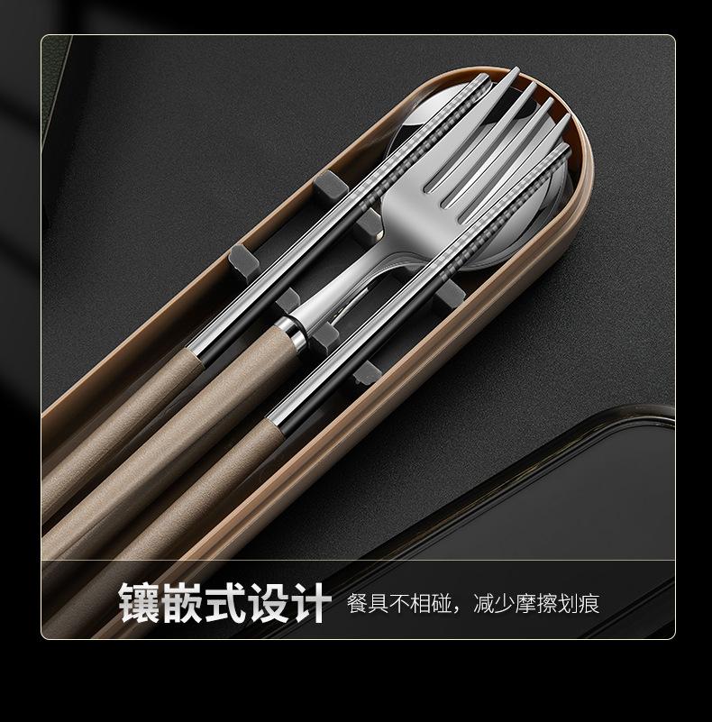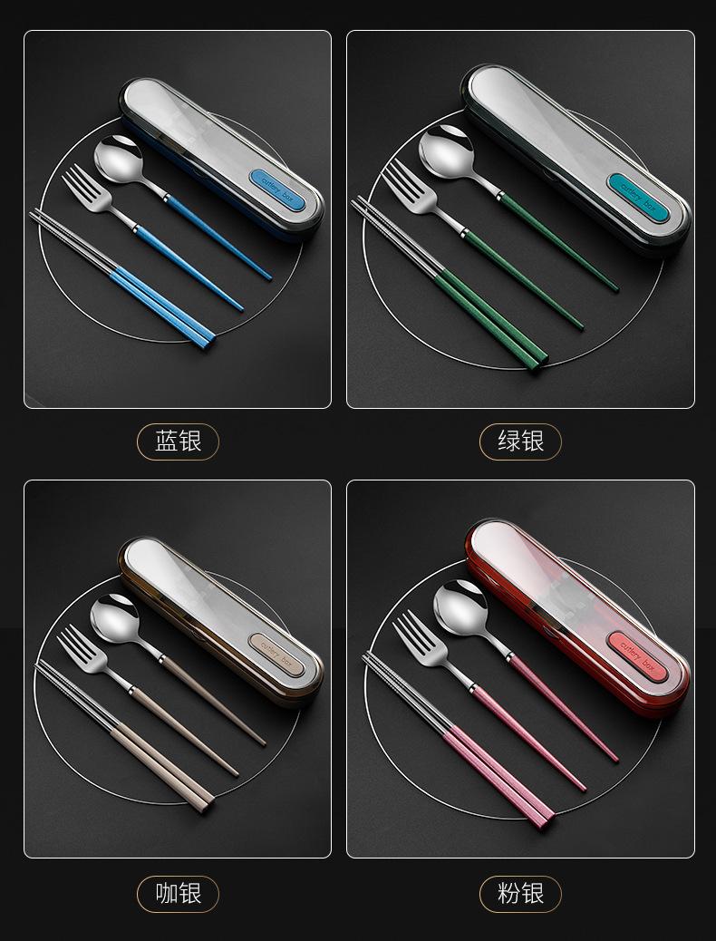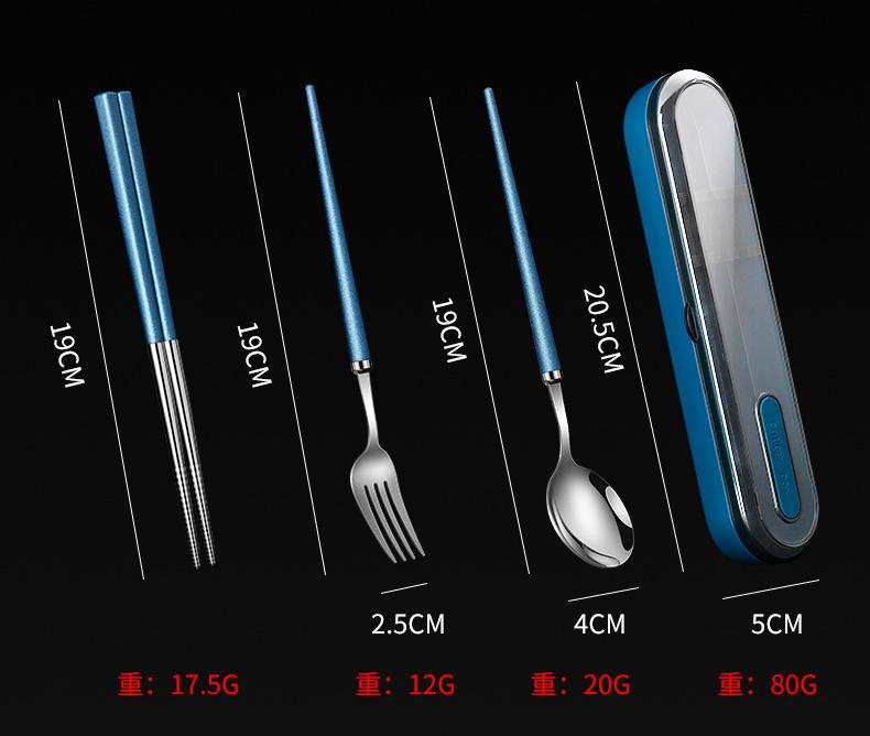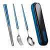 Juego de vajilla portátil de tres piezas de Portugal 304, de acero inoxidable, para viajes al aire libre, para estudiantes, con cuchara, tenedor y palillos.