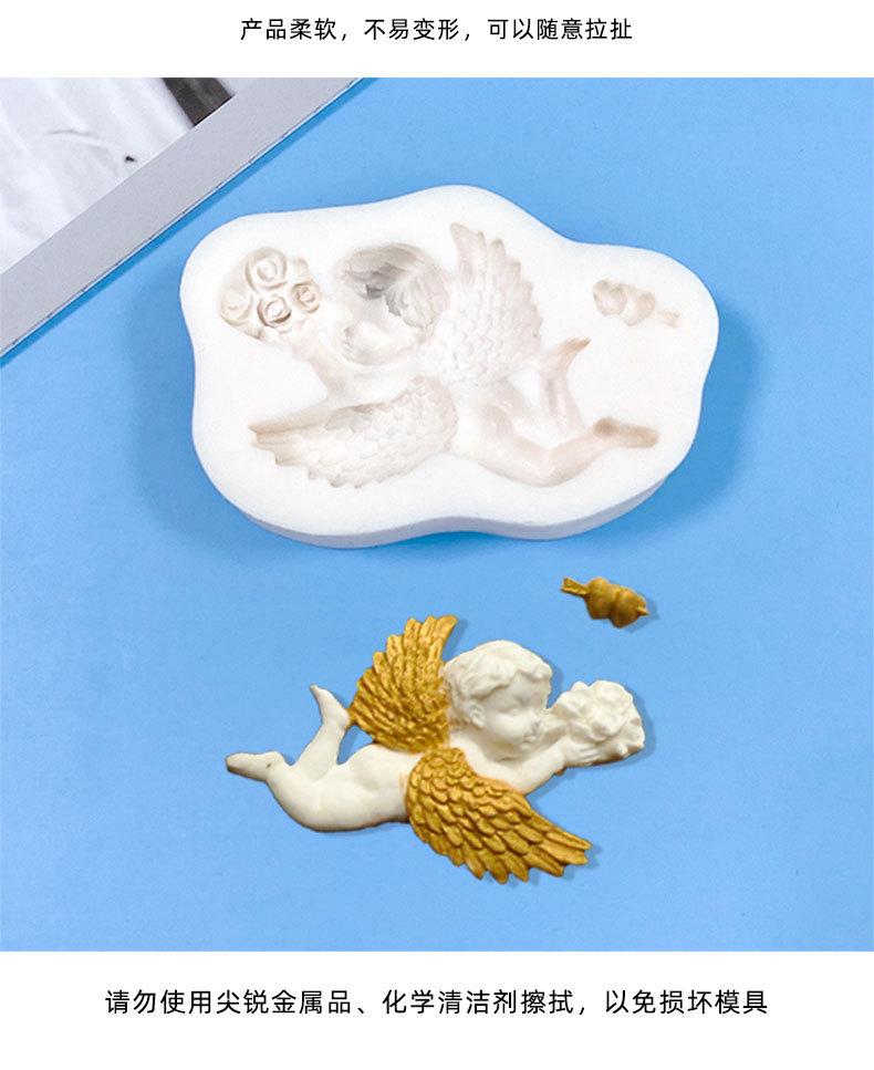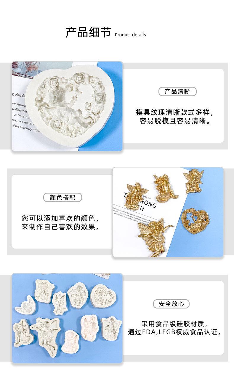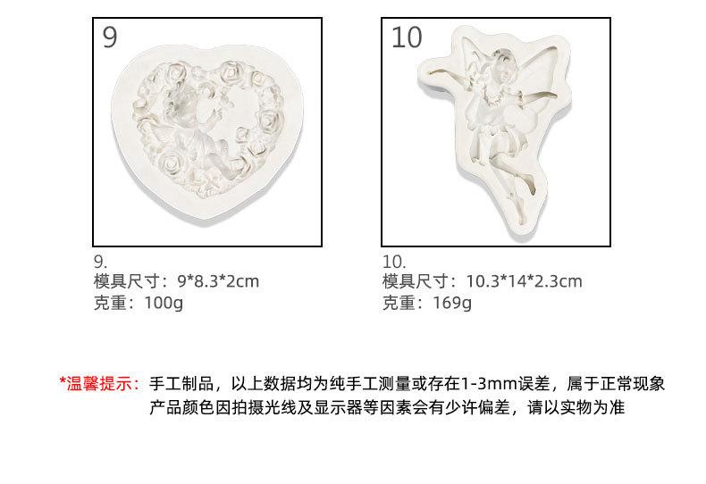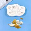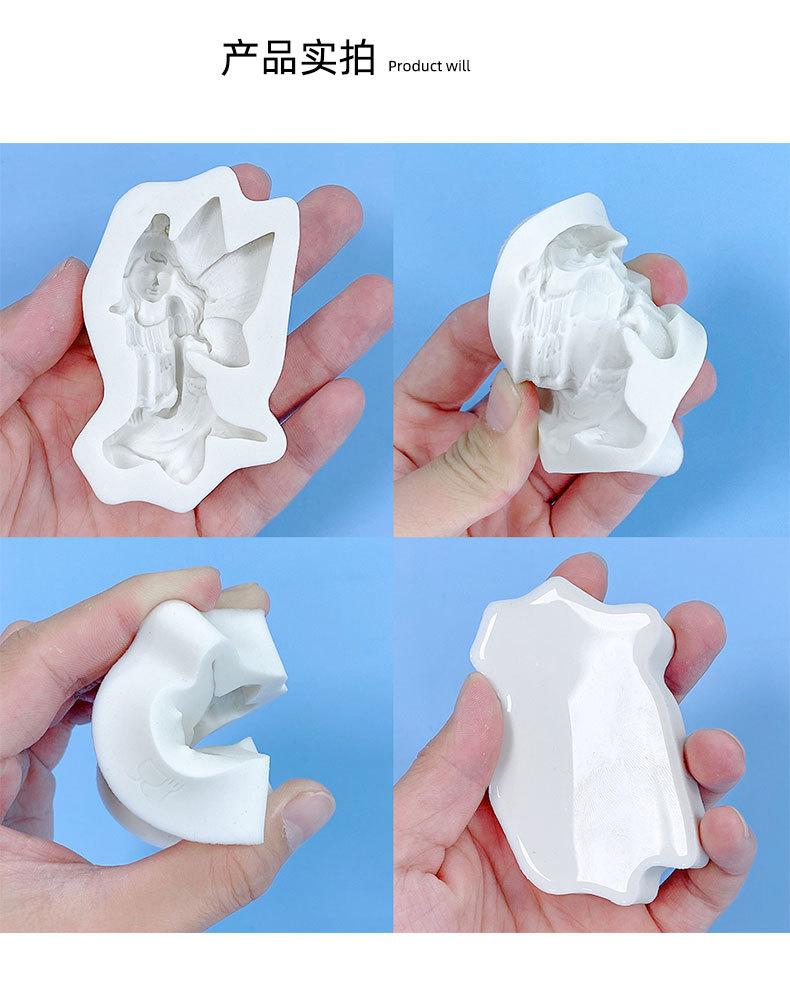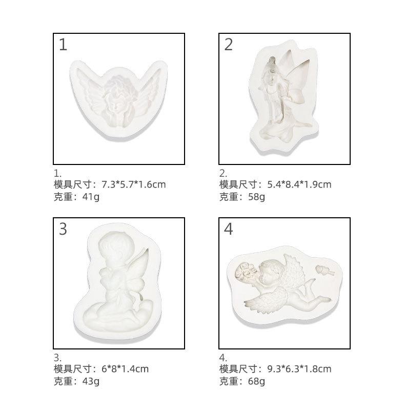 Una variedad de moldes de azúcar con forma de angelito, moldes de silicona para decoración de pasteles de chocolate y elfos de ángel.