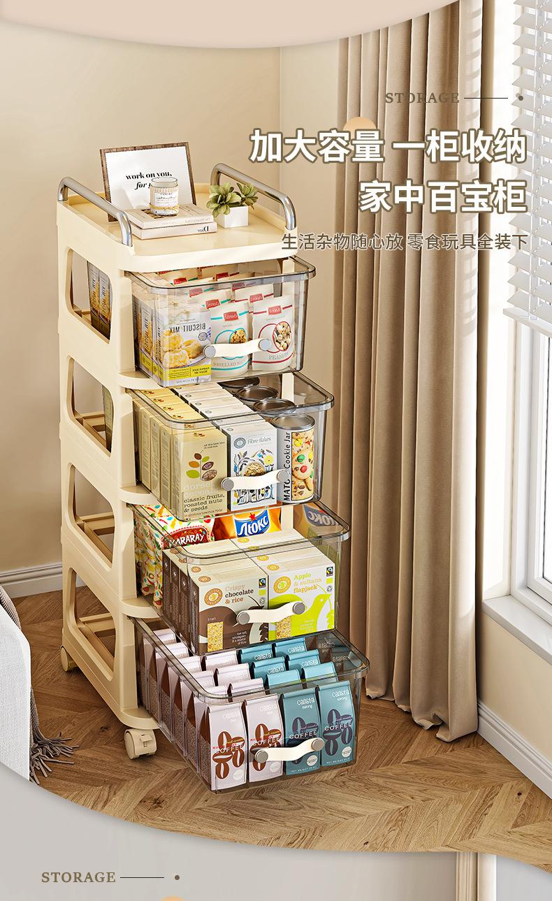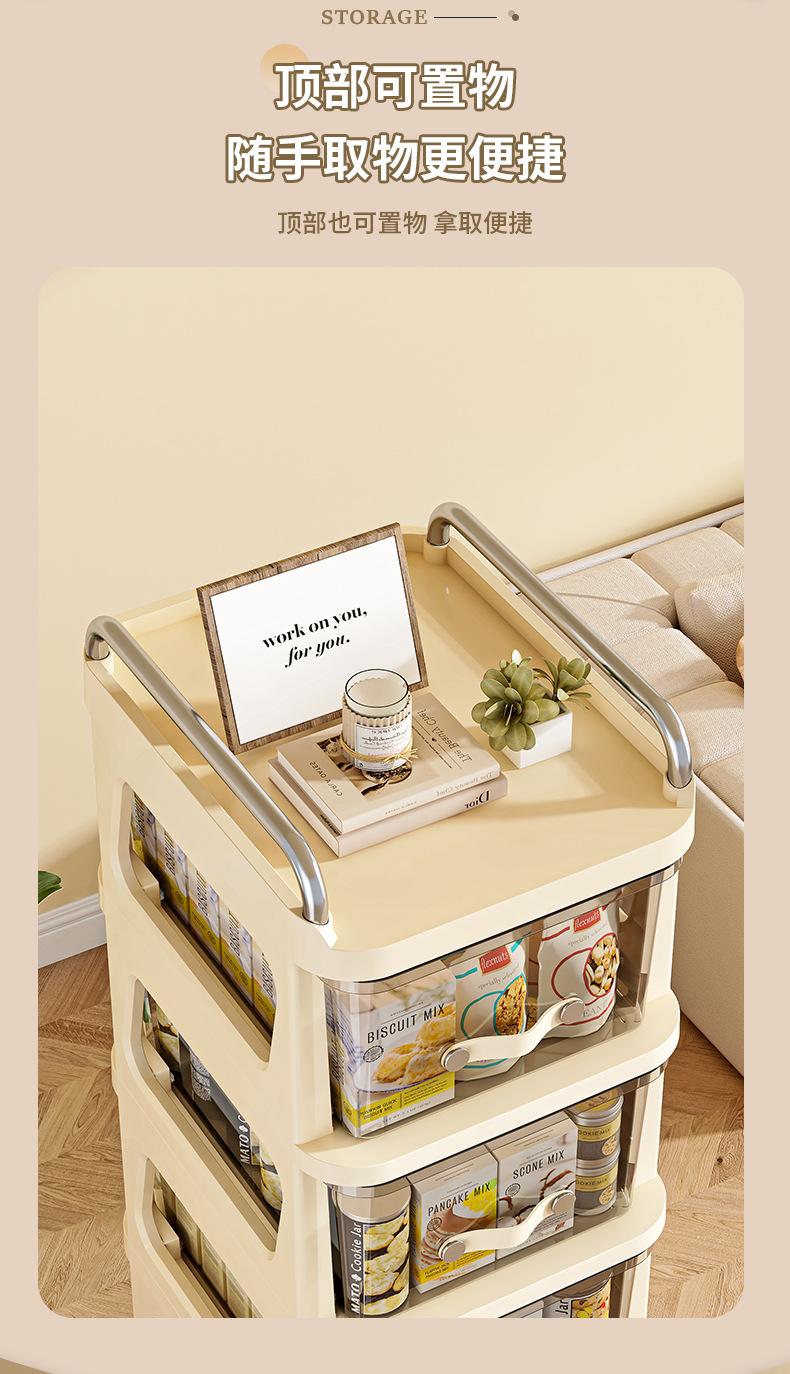 Gabinete de almacenamiento tipo cajón, multifuncional, extraíble, multicapa, para el hogar, con carrito para dormitorio, estilo crema.