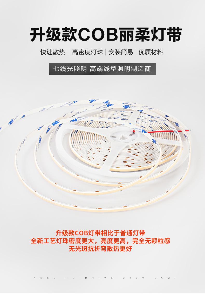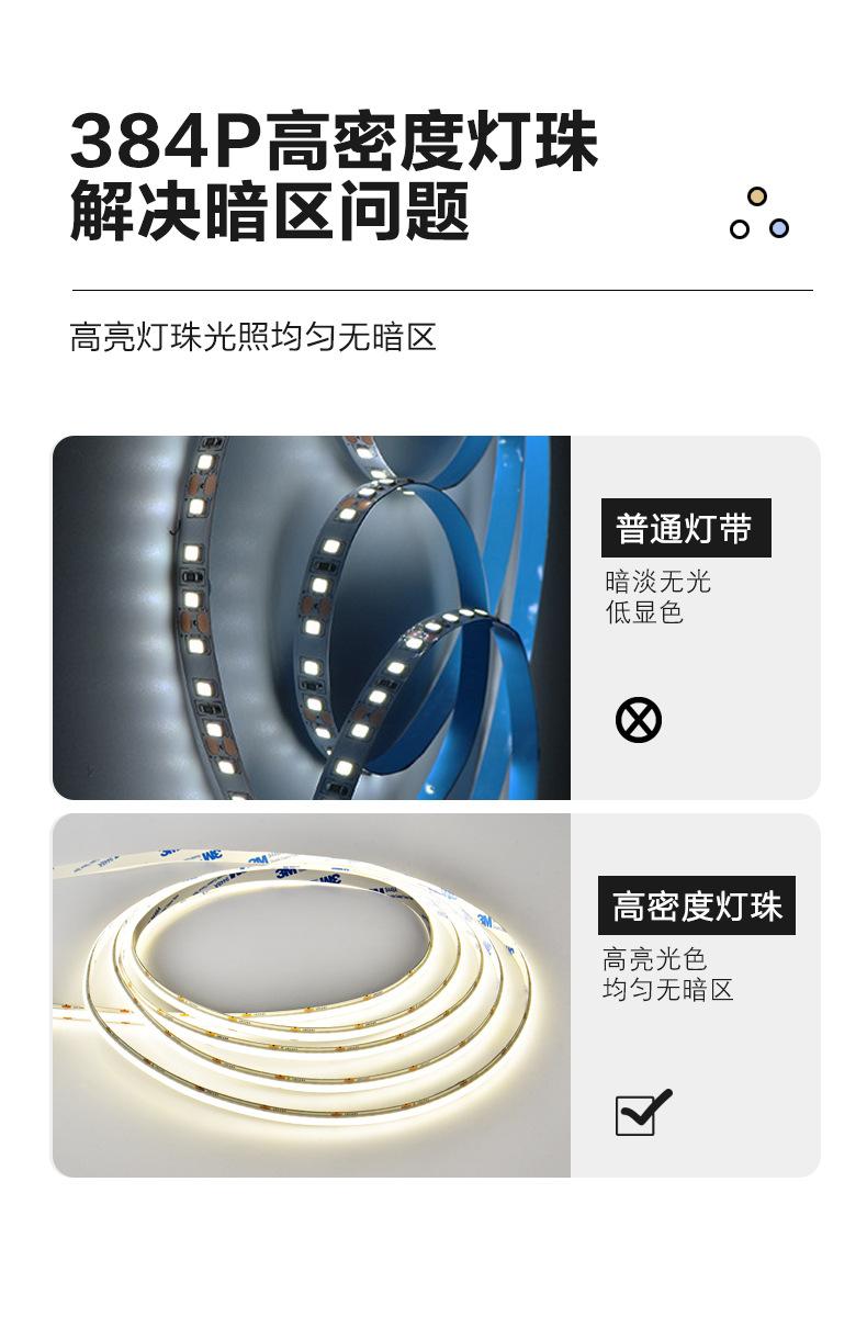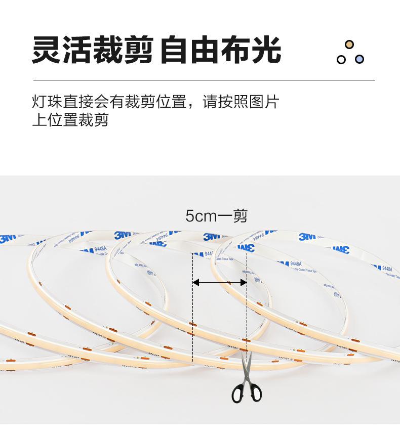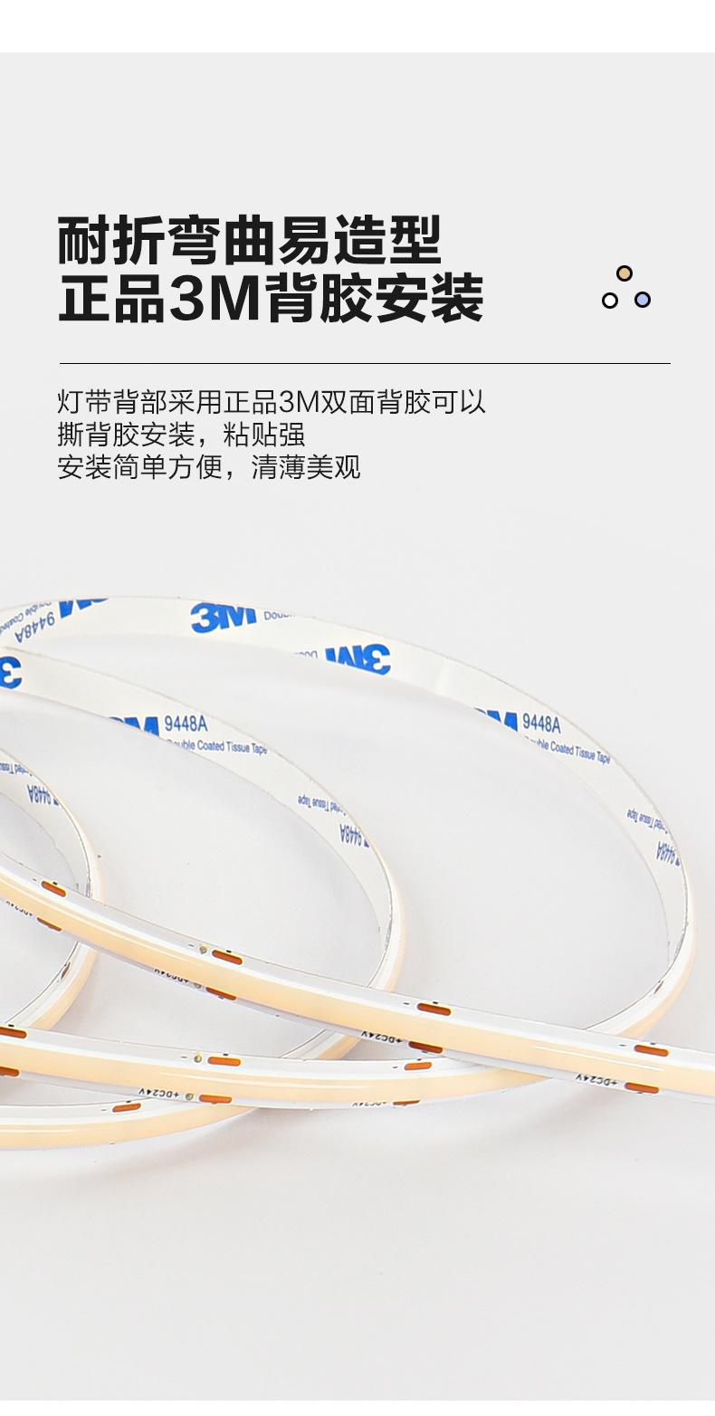 Tira de luz COB de bajo voltaje autoadhesiva nuevo proceso superbrillante y completamente sin grano centro comercial decoración del hogar gabinete decoración de escalera