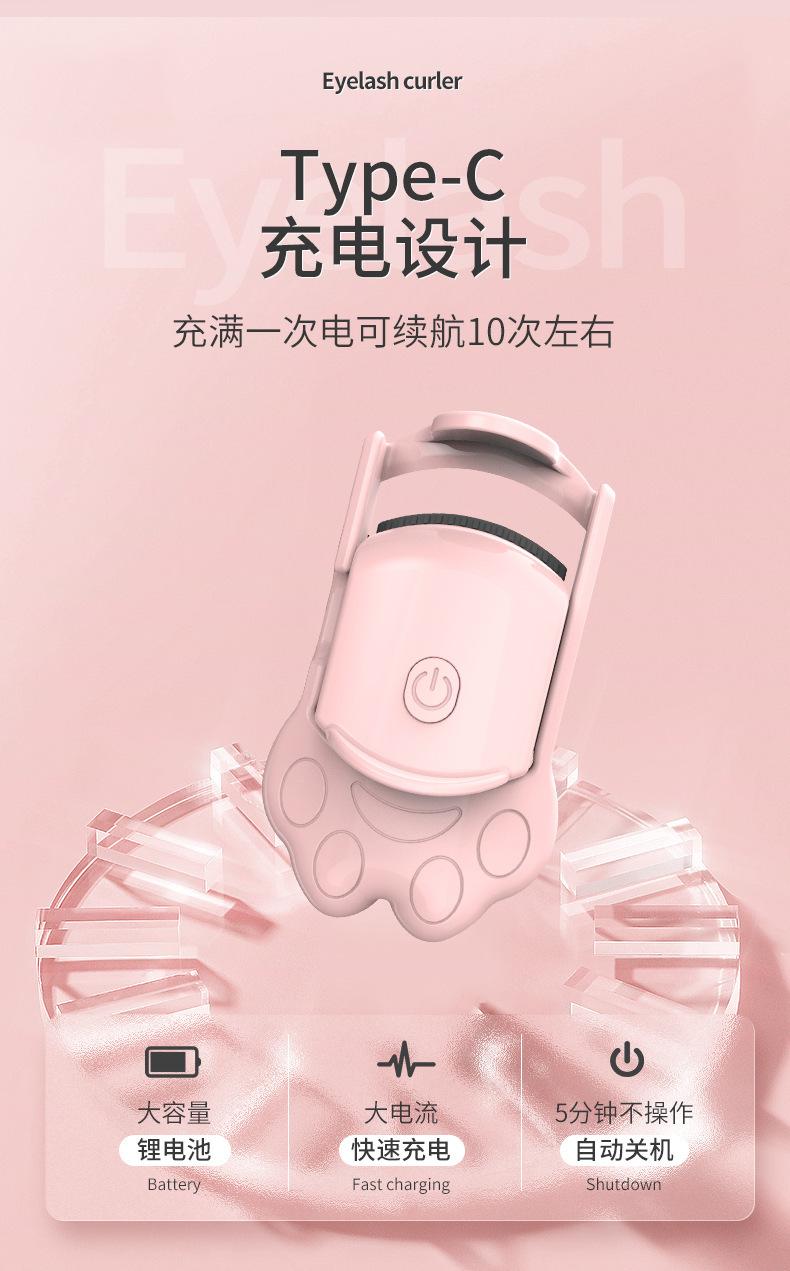 Rizador de pestañas eléctrico al por mayor, rizador de pestañas de estilo duradero, rizador eléctrico de carga, rizador de pestañas eléctrico portátil con garra de gato