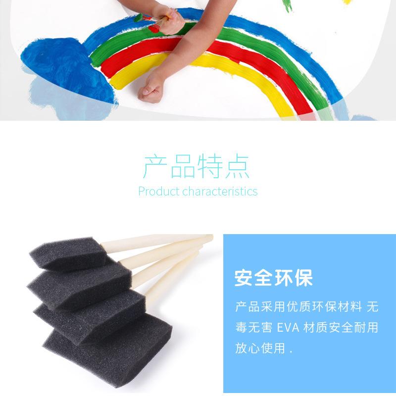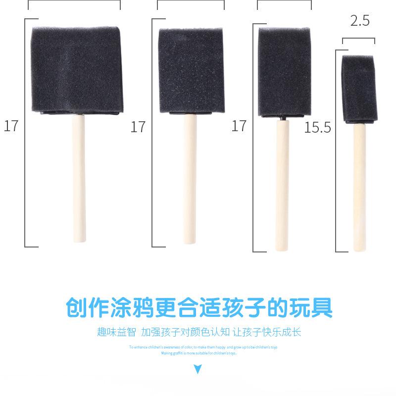 Pincel de esponja negra con mango de madera individual para pintar en jardín de infantes, grafiti para niños, bricolaje, esponja negra individual