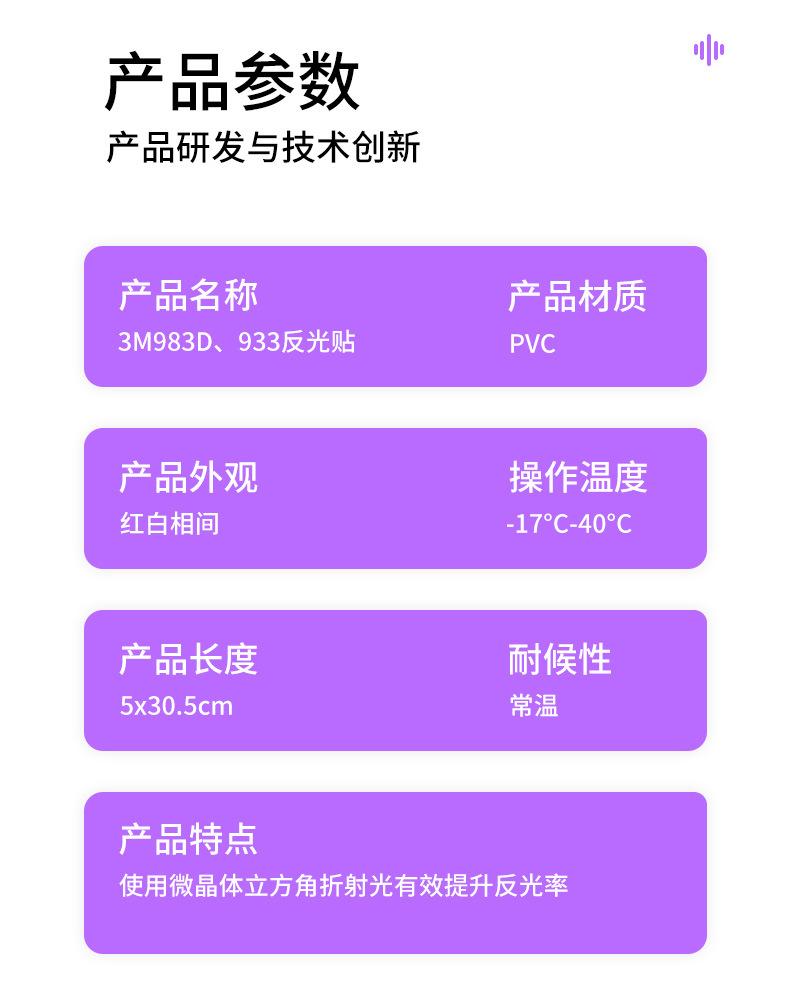 933 reflective stickers * 3m long * 5cm wide (10 pieces) * PVC * Red and White * 5 years