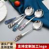 Cuchara de acero inoxidable 304, estilo coreano, de cabeza redonda, espesa, exquisita, para el hogar, de alta gama, con espejo ligero.