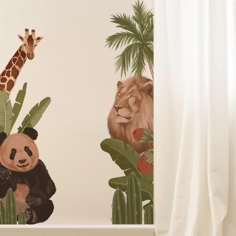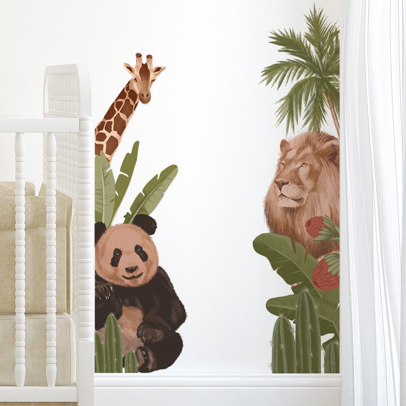 FX-C449 - Adhesivo de pared con diseño de panda, león y jirafa para habitación de niños y guardería, venta al por mayor