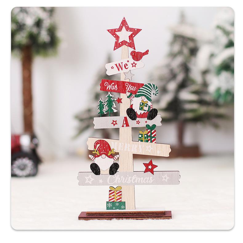 Nuevo Producto Transfronterizo Decoraciones Navideñas Árbol de Navidad de Madera Pintado Adornos de Muñeco de Dibujos Animados Sin Rostro Artesanías de Madera