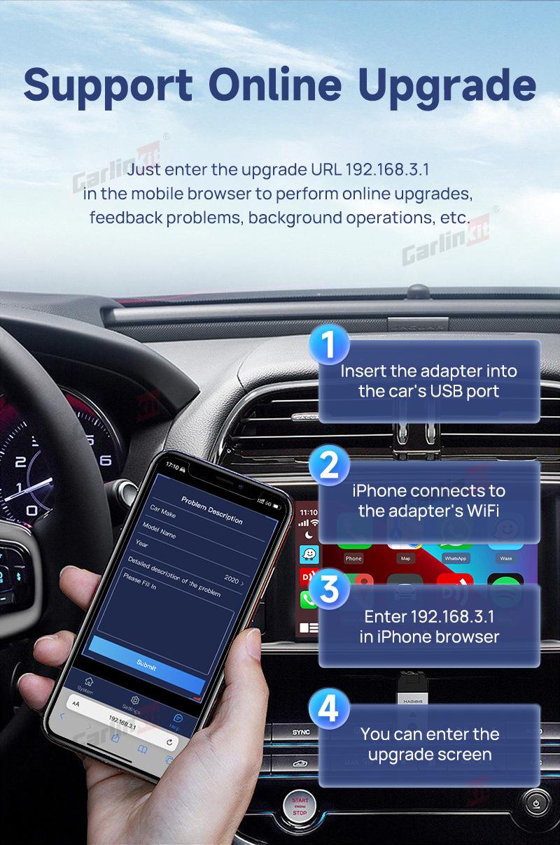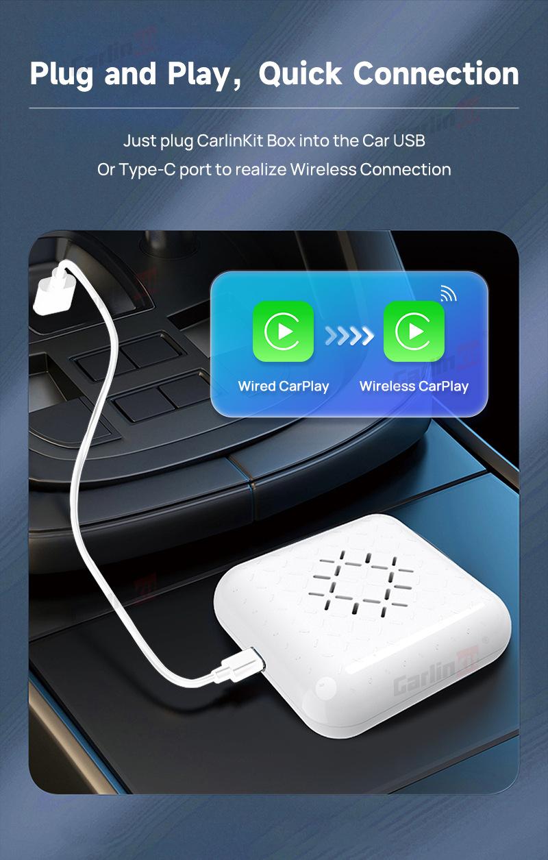 Carlinkit Adaptador Original Alámbrico CarPlay a Inalámbrico Adecuado para Teléfonos Apple Actualización Inalámbrica en el Coche