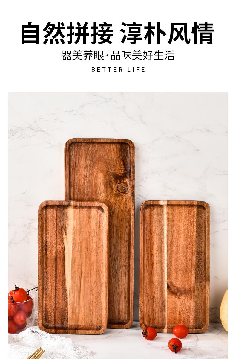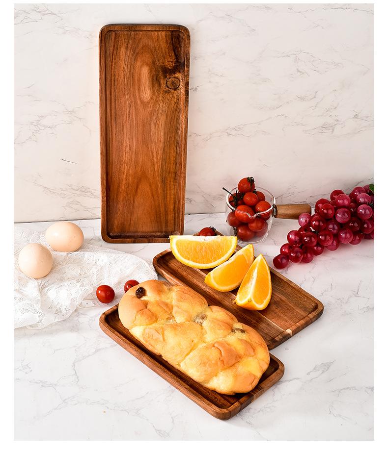Bandeja de comida de madera de acacia japonesa rectangular, bandeja de té europea, bandeja de madera para cocina, bandeja para pan, bandeja para postres y frutas.