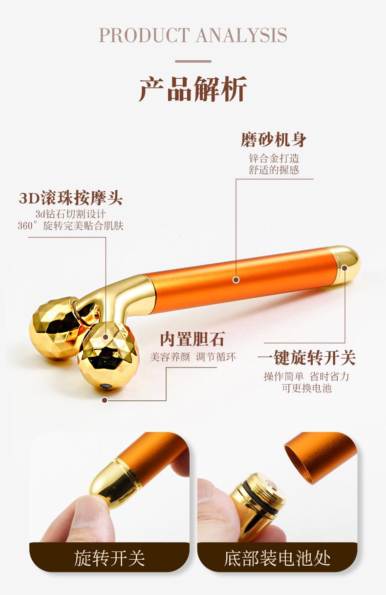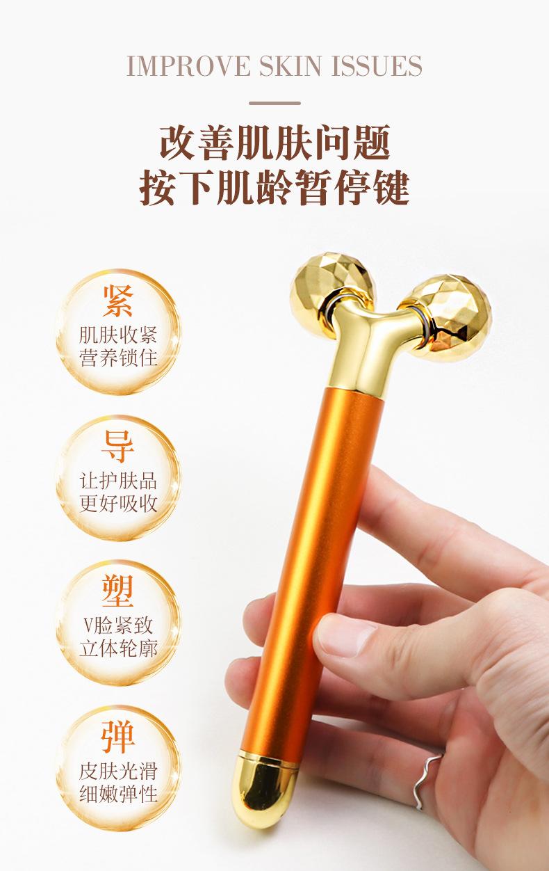 Barra de Belleza de Oro de 24K al por Mayor Lifting Eléctrico Introducción Instrumento de Belleza Rodillo 3D V Cara Masaje Facial Barra de Oro