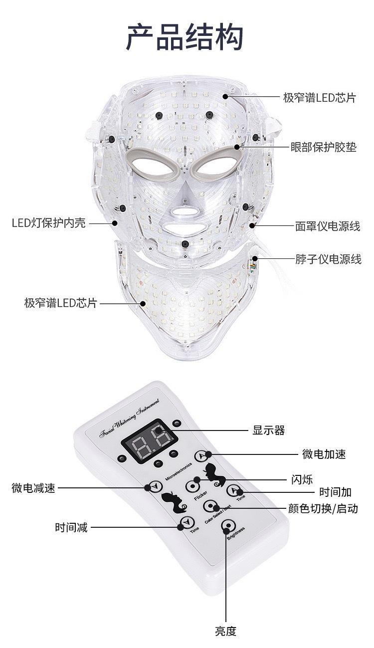 Mascarilla de belleza colorida transfronteriza con rejuvenecimiento de fotones, espectrómetro de cuello de siete colores, mascarilla de belleza LED facial para el hogar.