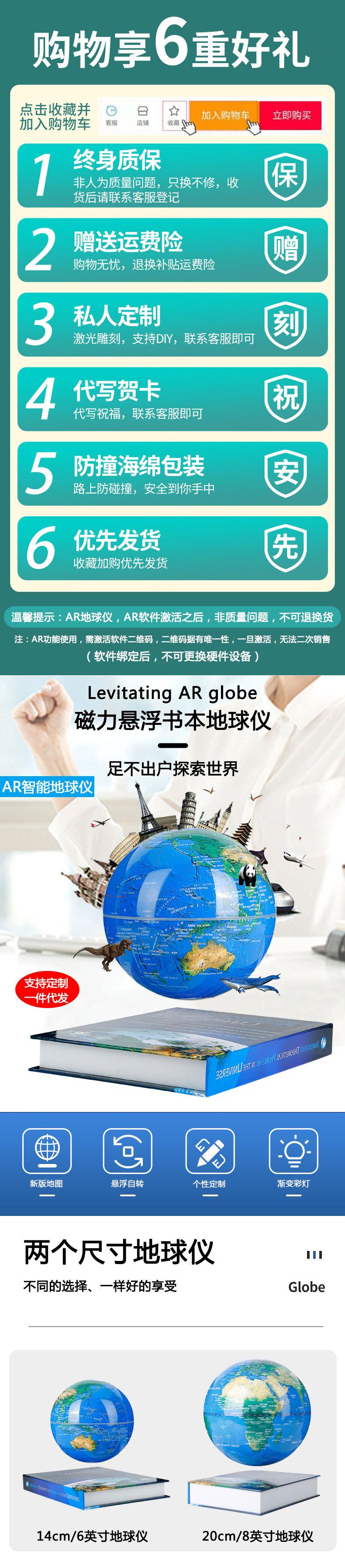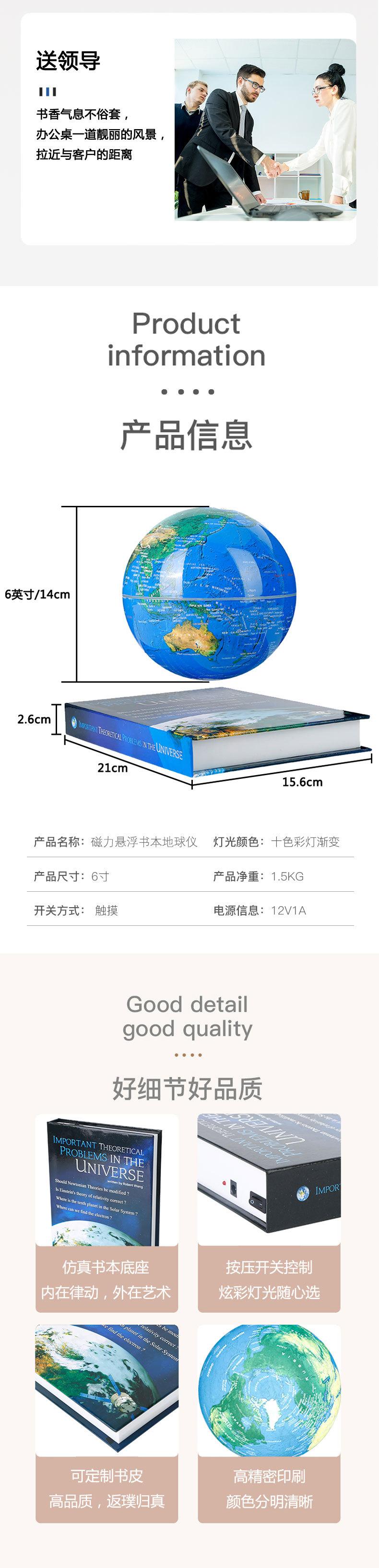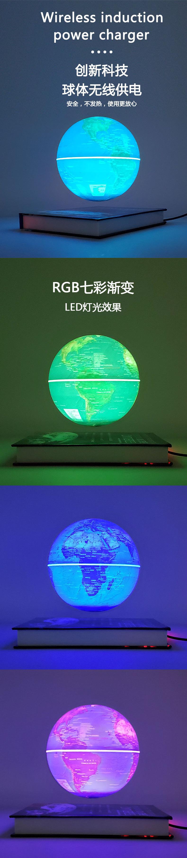 Globo de levitación magnética de 6 pulgadas y 14 cm, luz de color giratoria, globo blanco, decoración para sala de estar, estudio, globo LED