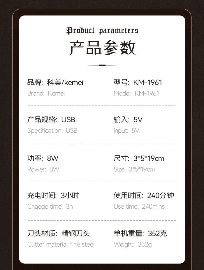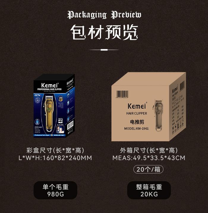 Kemei Kemei Cortadora de Cabello Eléctrica Profesional Afeitadora Grabadora Ajustable Metal Cortapelos Km-1961