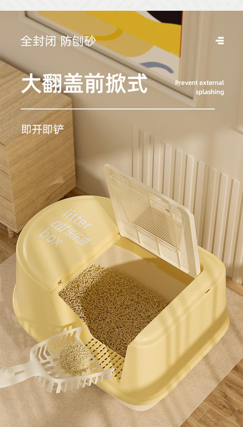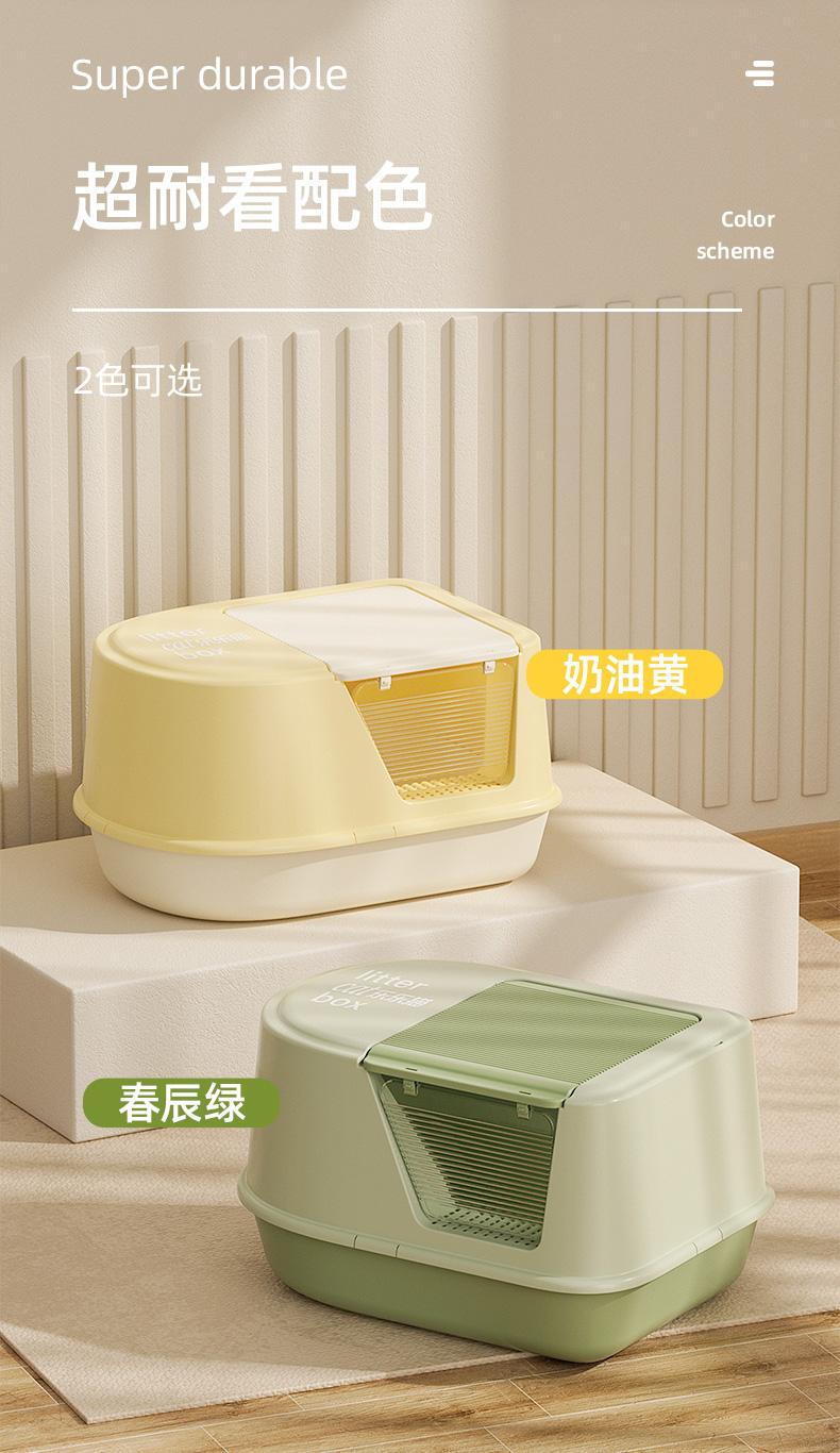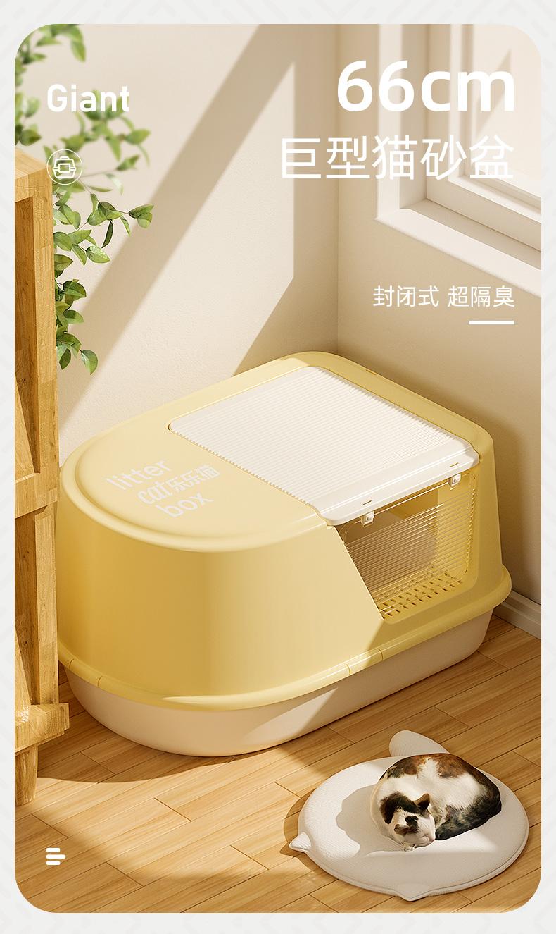 [Nombre del Producto]: Caja de Arena para Gatos Lele Cat Súper Grande Totalmente Cerrada - (Amarillo Crema/Verde Chunchen)