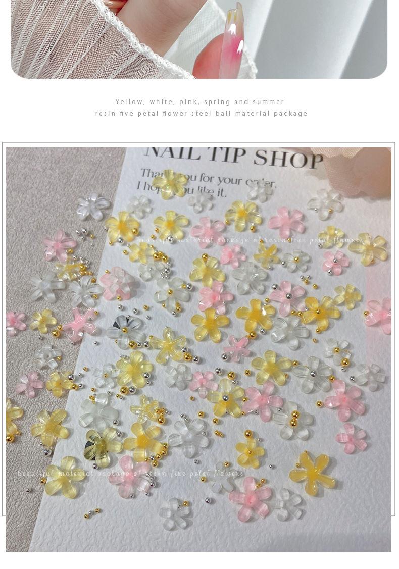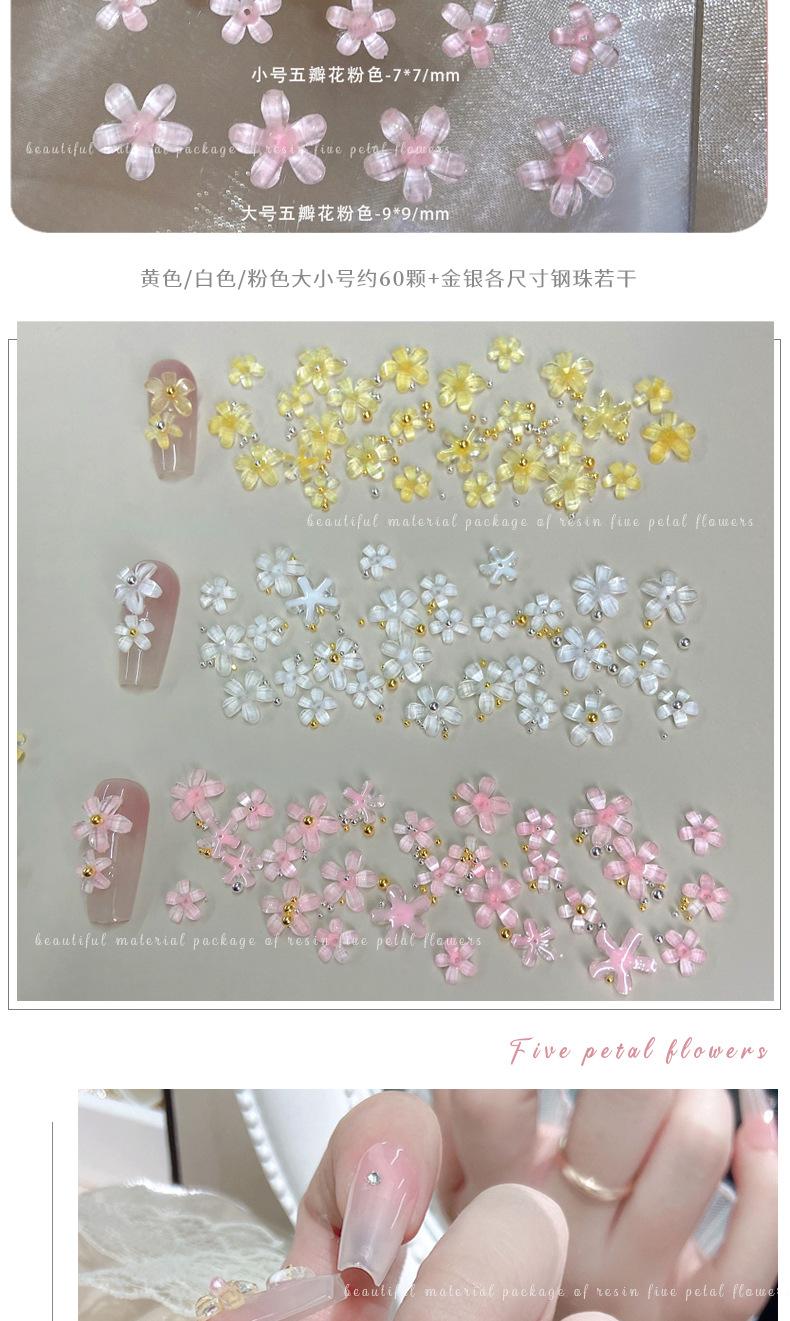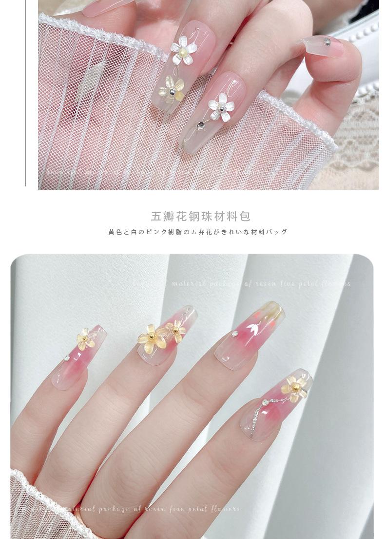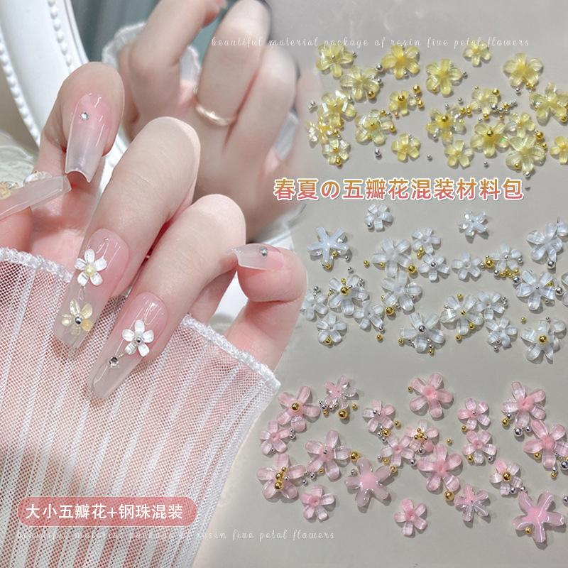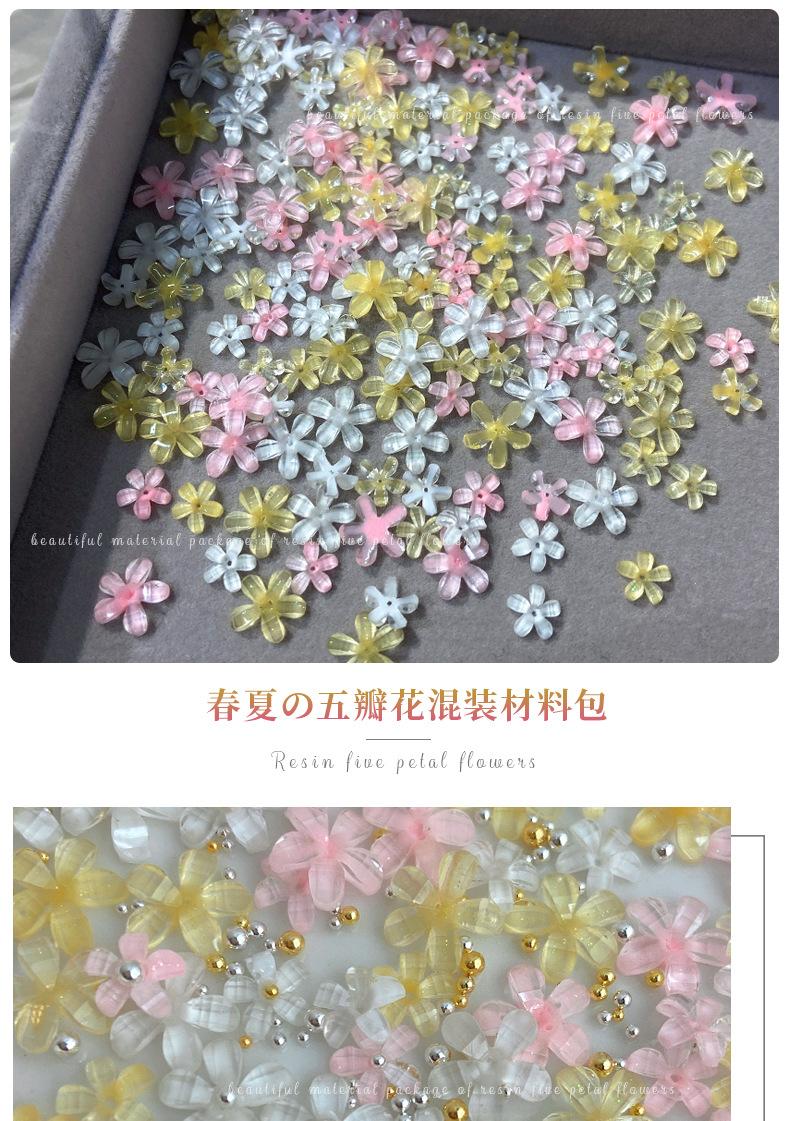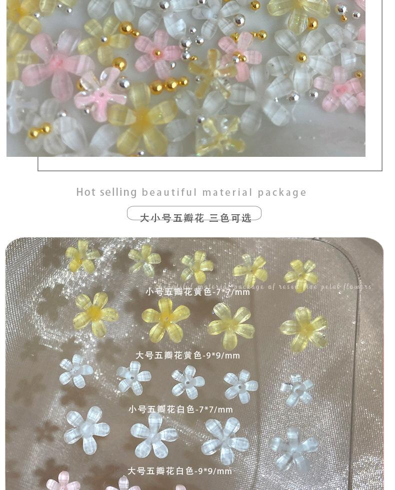 Flor de Cinco Pétalos Joyería para Arte de Uñas Paquete de Materiales Mixtos 2025 Nuevo Blanco Transparente Hielo Flor Rosa Resina Uñas Diamante Venta al por Mayor