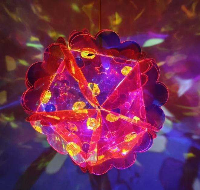 Puesto creativo de Año Nuevo en el mercado nocturno, linterna láser portátil de colores, linterna dorada hecha a mano para niños, venta al por mayor