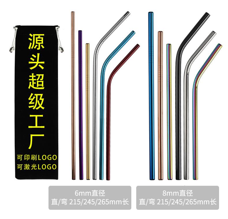 Fabricantes transfronterizos de pajitas de acero inoxidable 304, venta al por mayor, pajitas de metal, juego de pajitas para té con leche, tubo para beber de color natural de Amazon