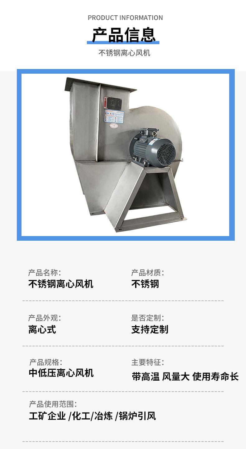Procesamiento 4-72 Ventilador de Acero Inoxidable Ventilador Centrífugo Grado Industrial Remoción de Polvo Ventilación Gases de Escape Resistente a la Corrosión Equipo de Protección Ambiental