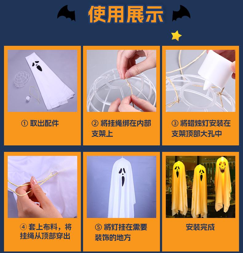 Festival de los Fantasmas Fantasma Brillante Fantasma Colgante Linterna Led Fantasma Colgante Decoración Atmósfera de Terror de Halloween Decoración de Exterior Arreglo Colgante
