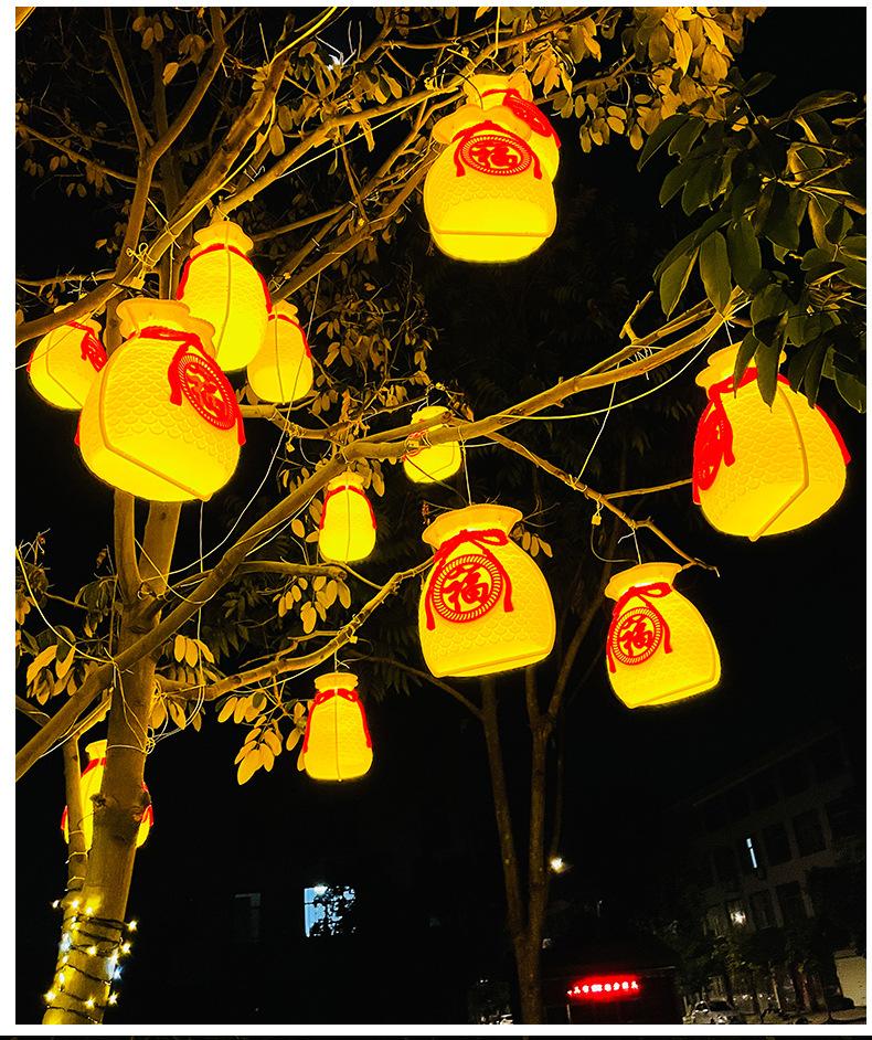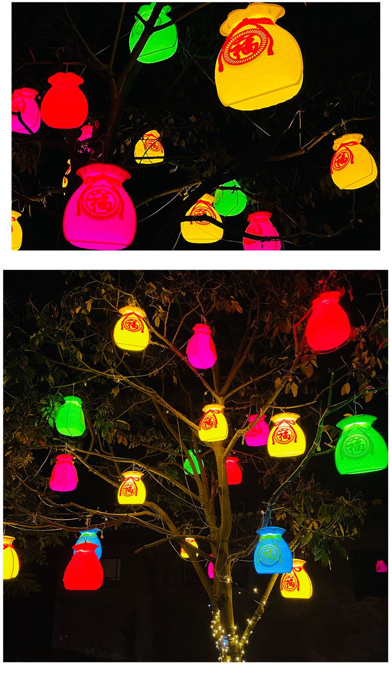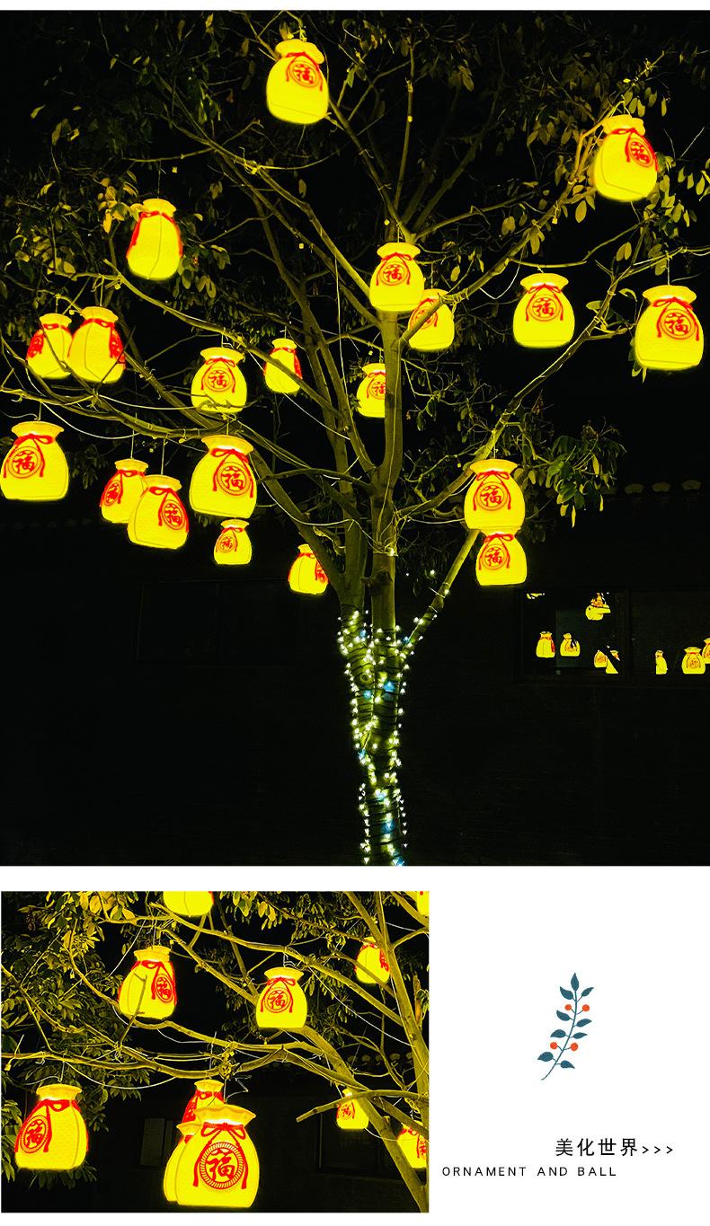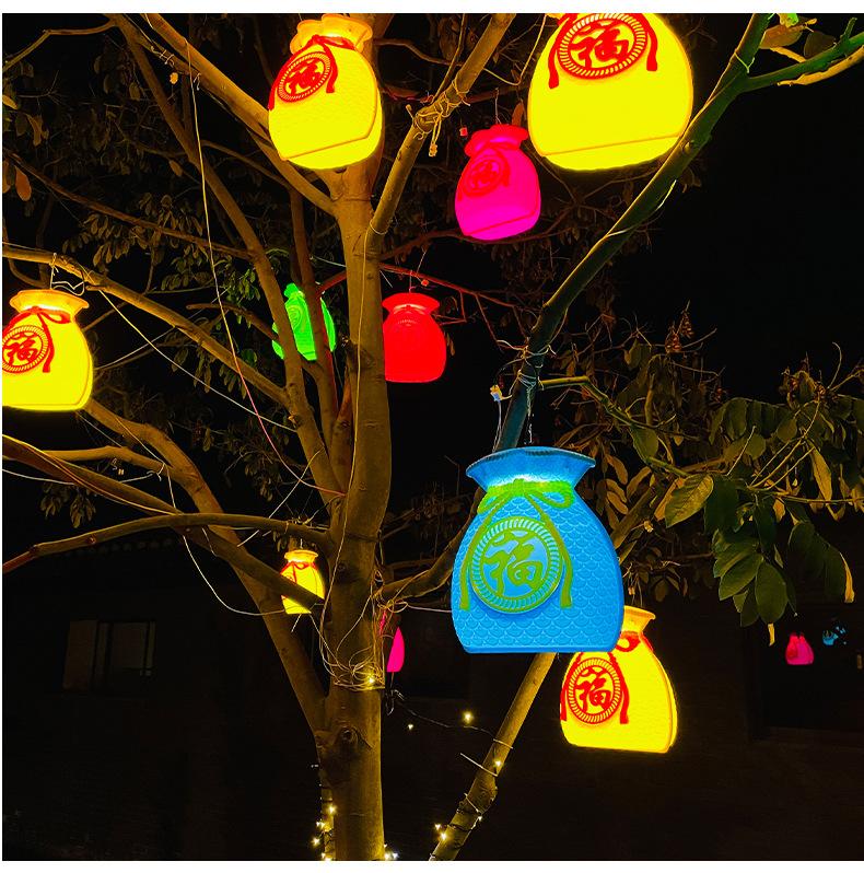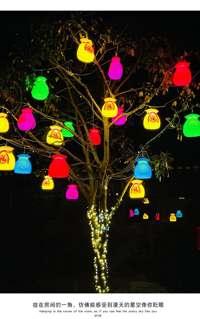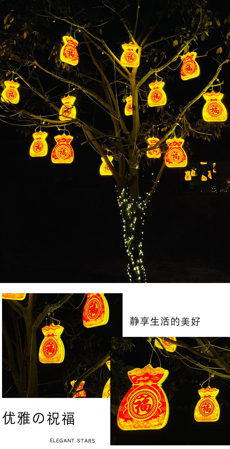Luces led de árbol colgantes de bolsa de la suerte, luces de paleta, iluminación exterior impermeable, luces de cadena de decoración para festival callejero de Año Nuevo