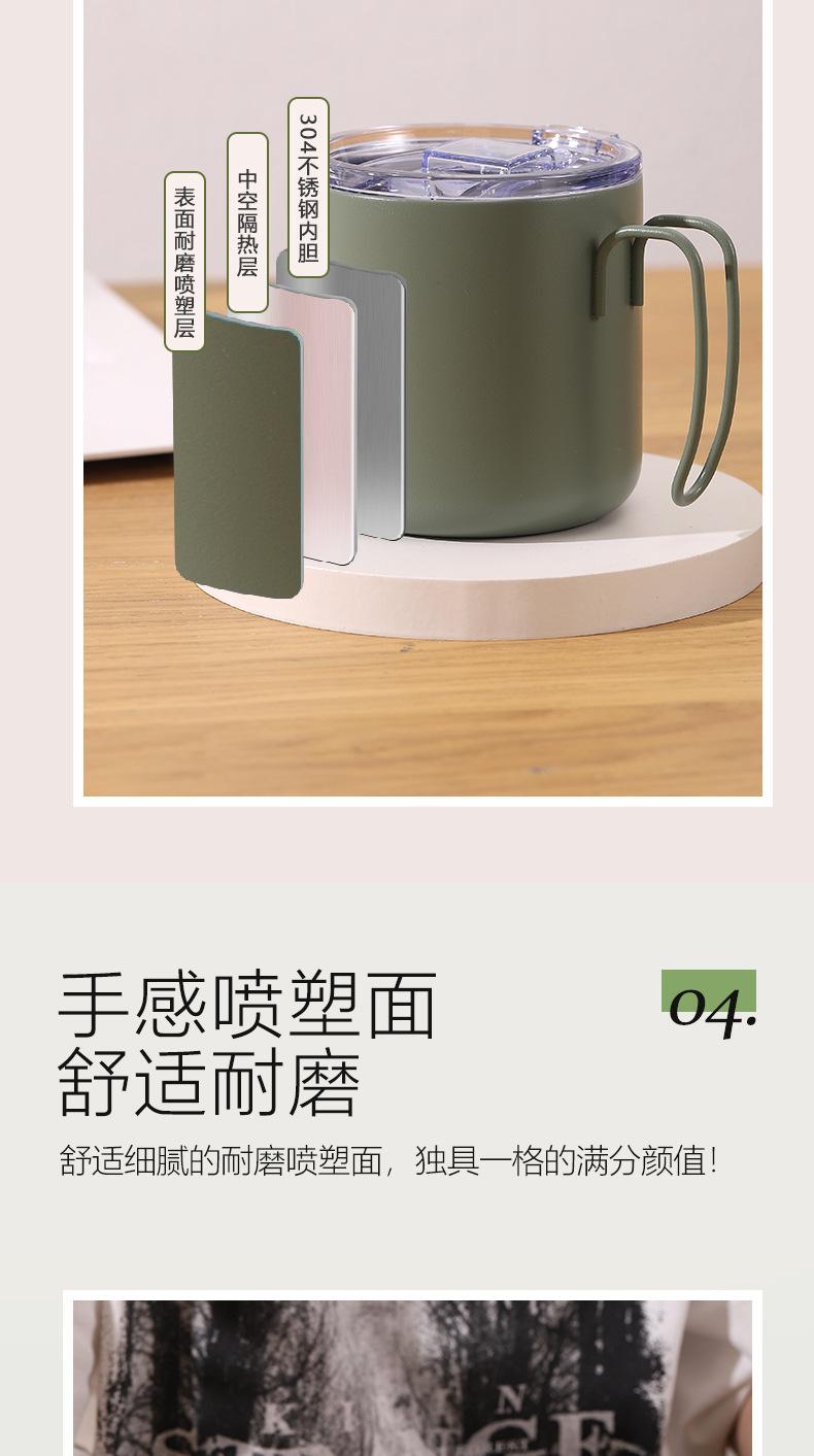 Taza de Acero Inoxidable 304 de 11 oz Taza de Café al Vacío Taza para Bebidas Asa de Alambre Regalo Portátil Aislada Taza de Agua