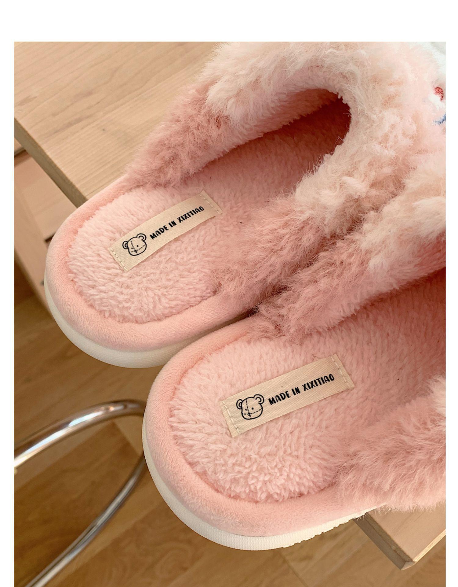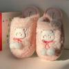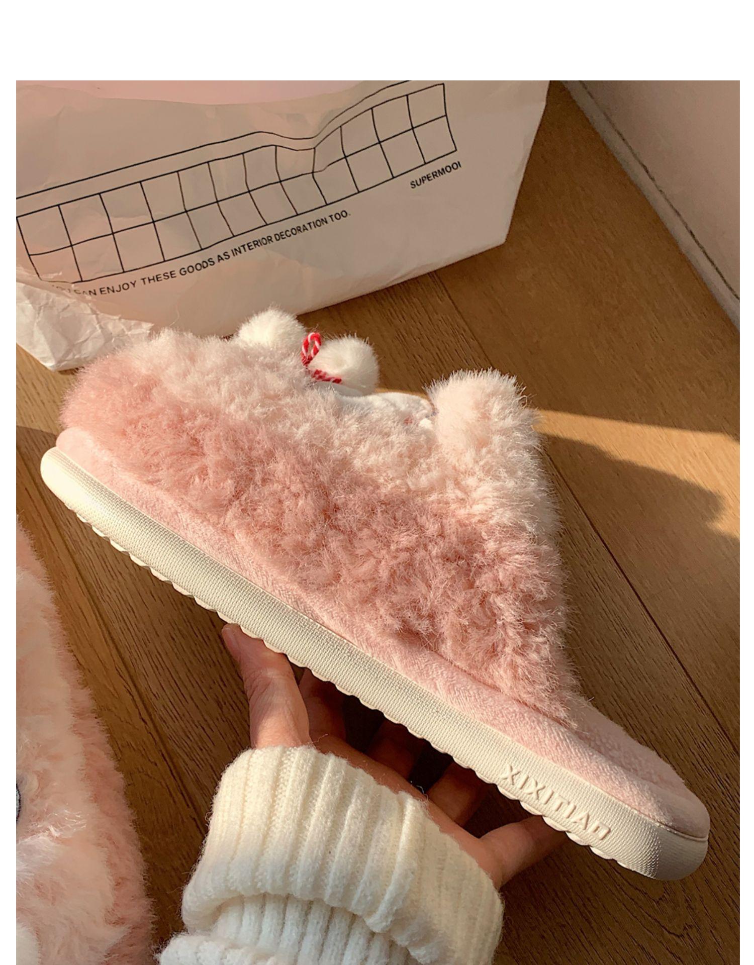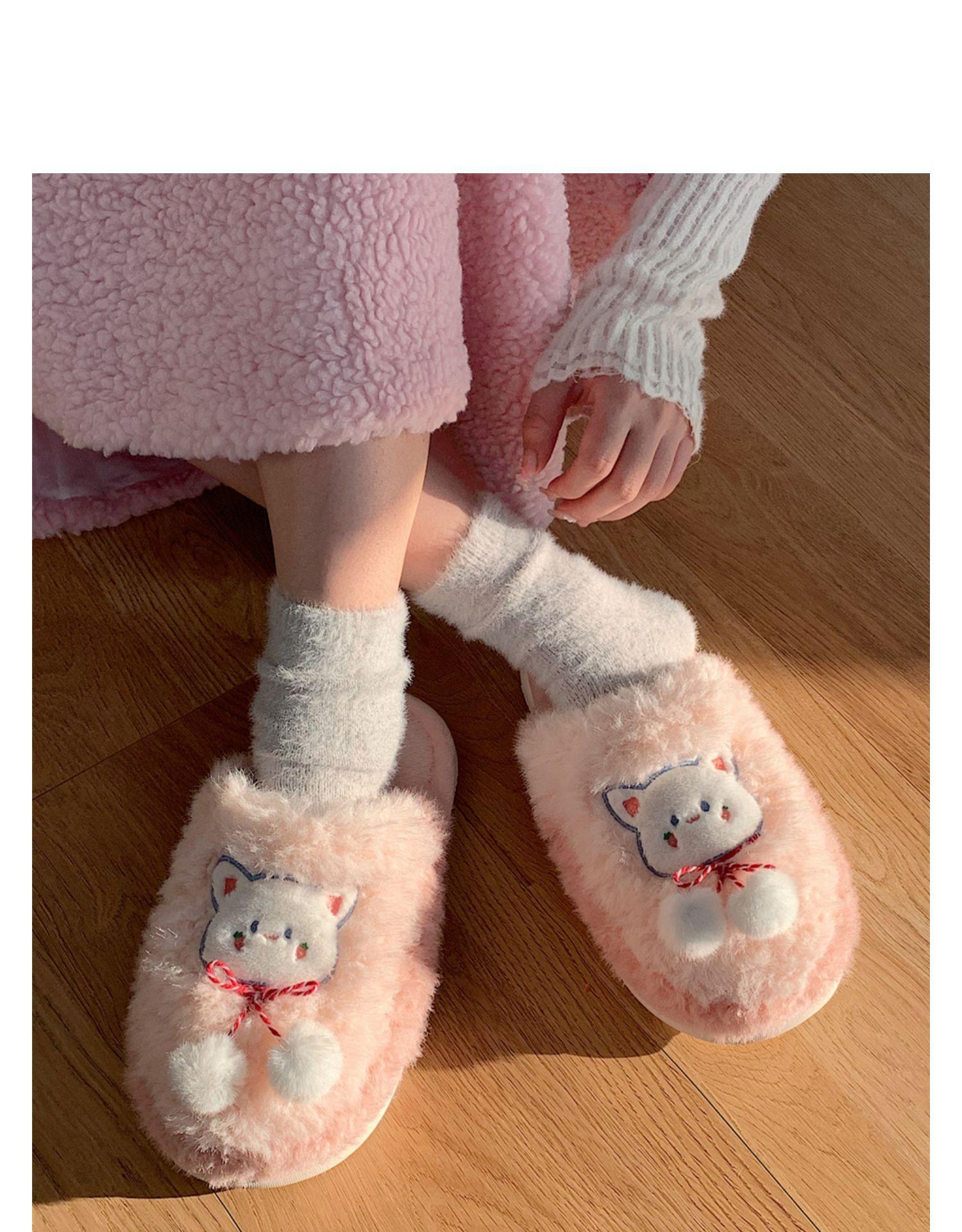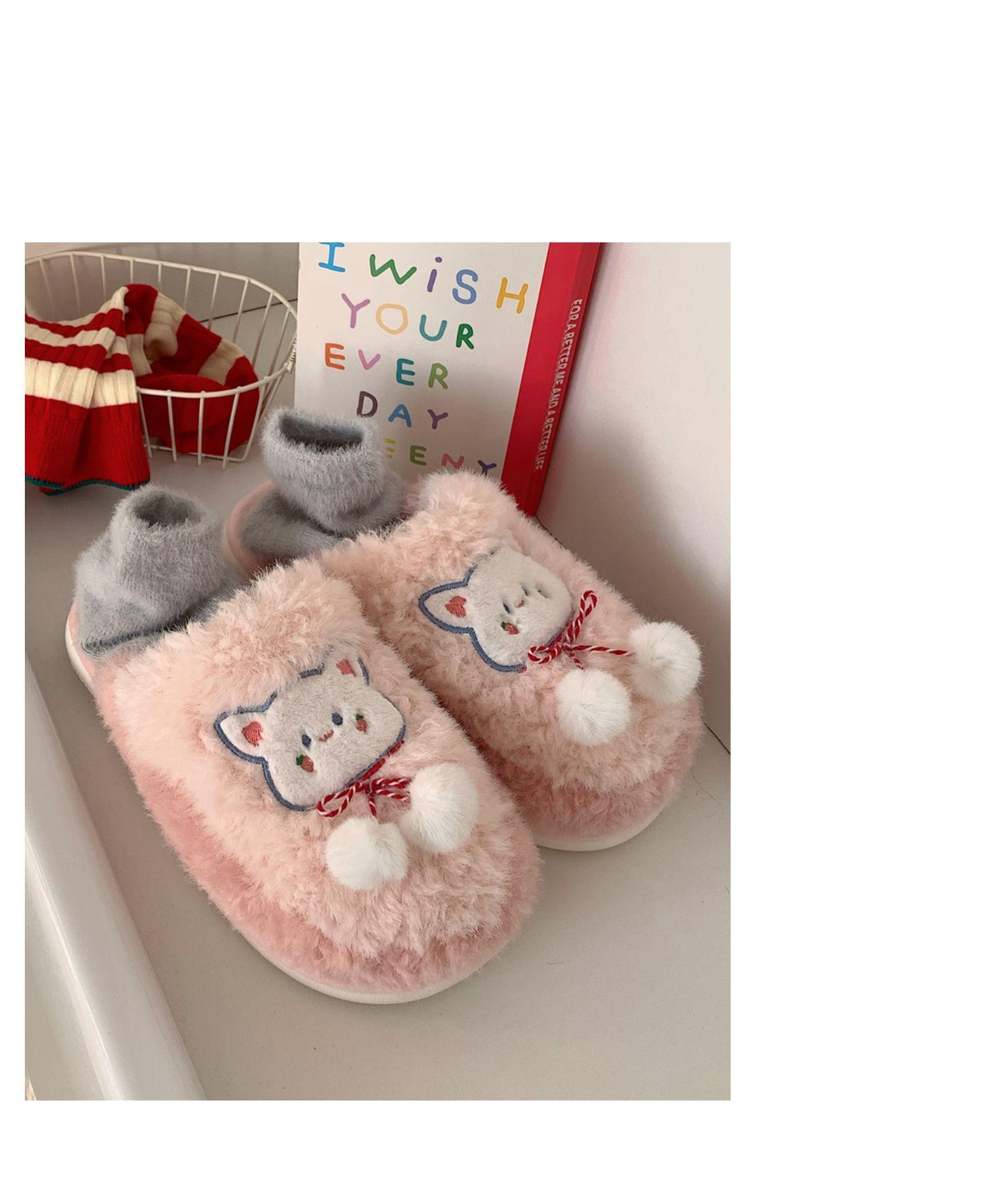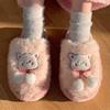 Pantuflas de algodón con punta cerrada y diseño de corazón de niña, cálidas y bonitas, para mujer, de invierno, informales, con dibujos animados, suaves y de fondo grueso, de algodón
