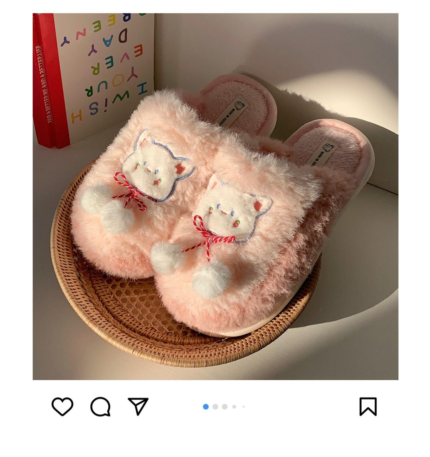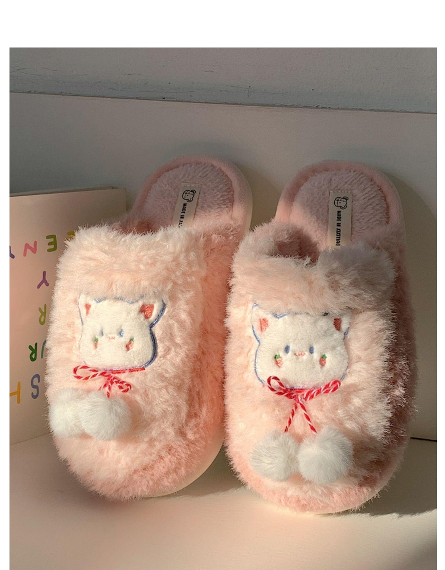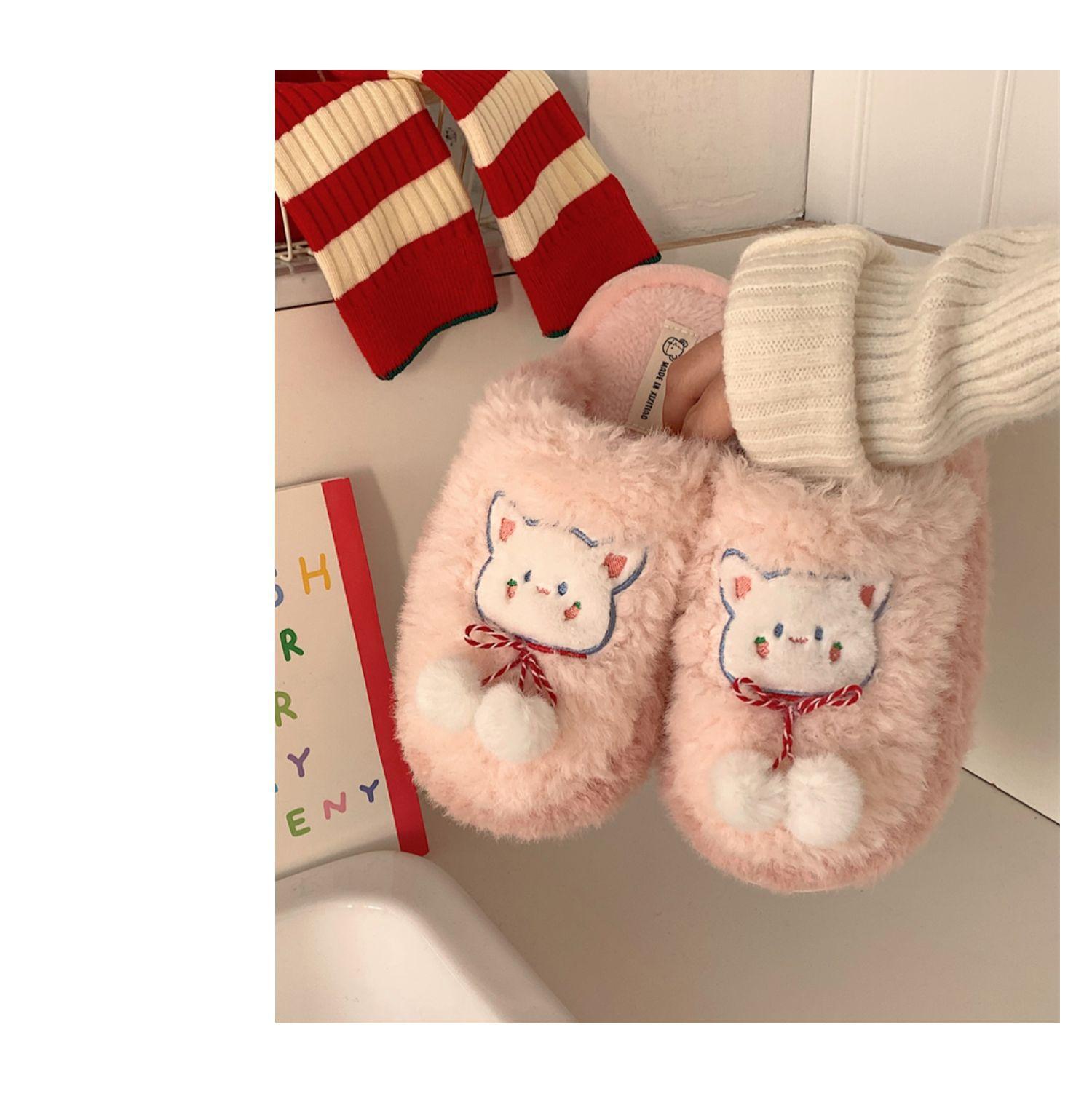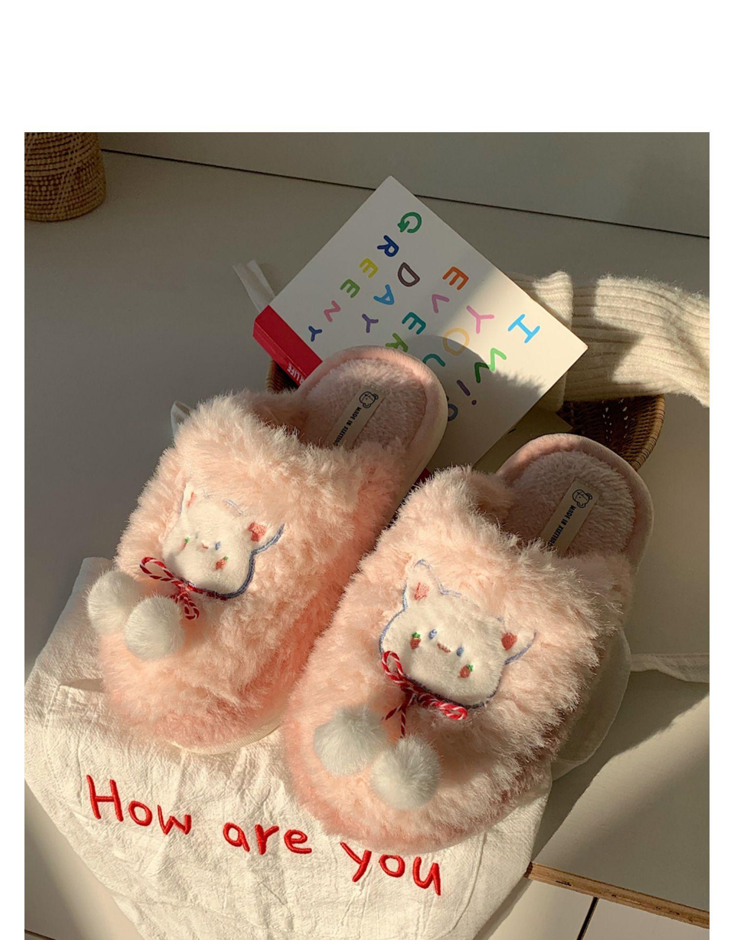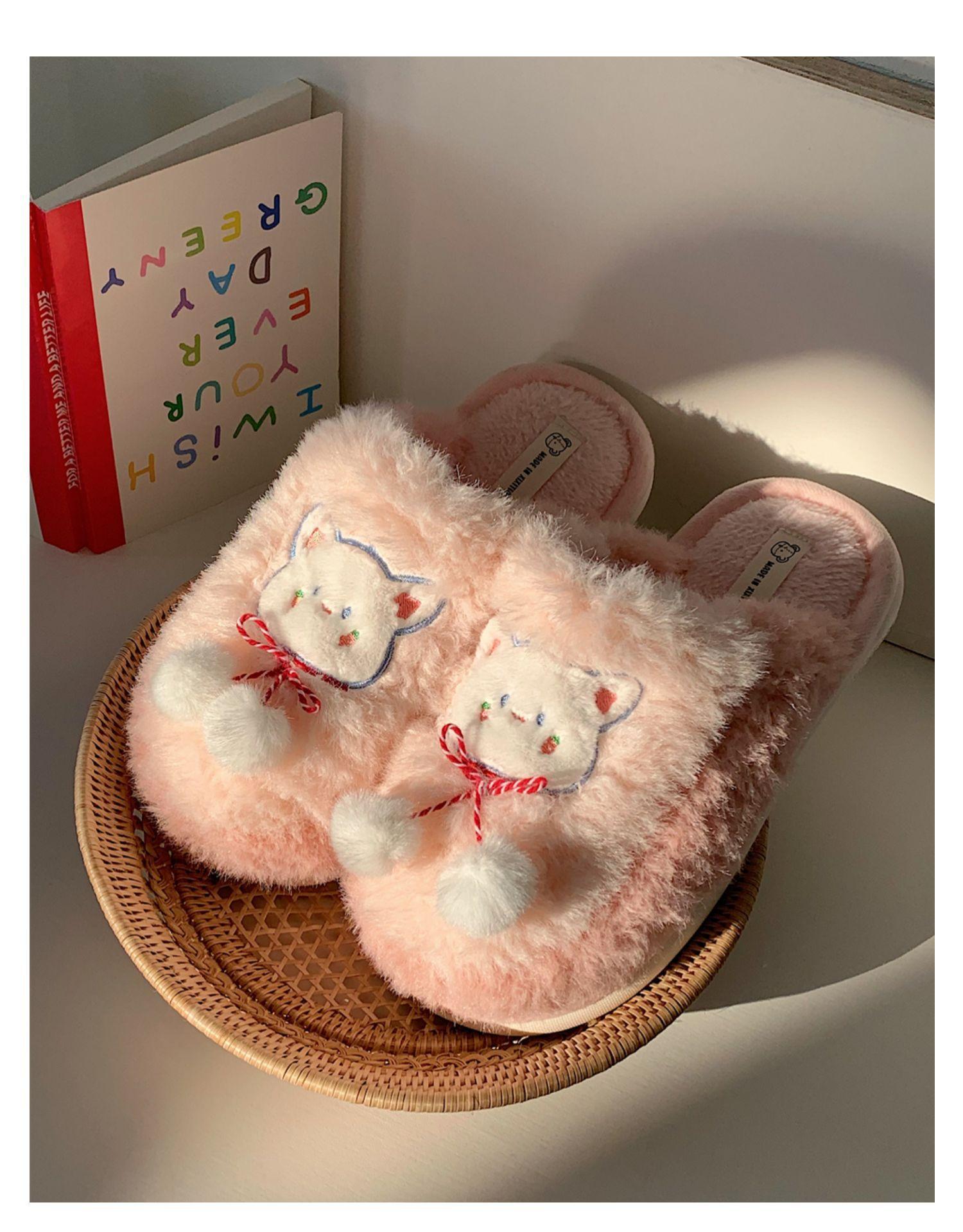 Pantuflas de algodón con punta cerrada y diseño de corazón de niña, cálidas y bonitas, para mujer, de invierno, informales, con dibujos animados, suaves y de fondo grueso, de algodón
