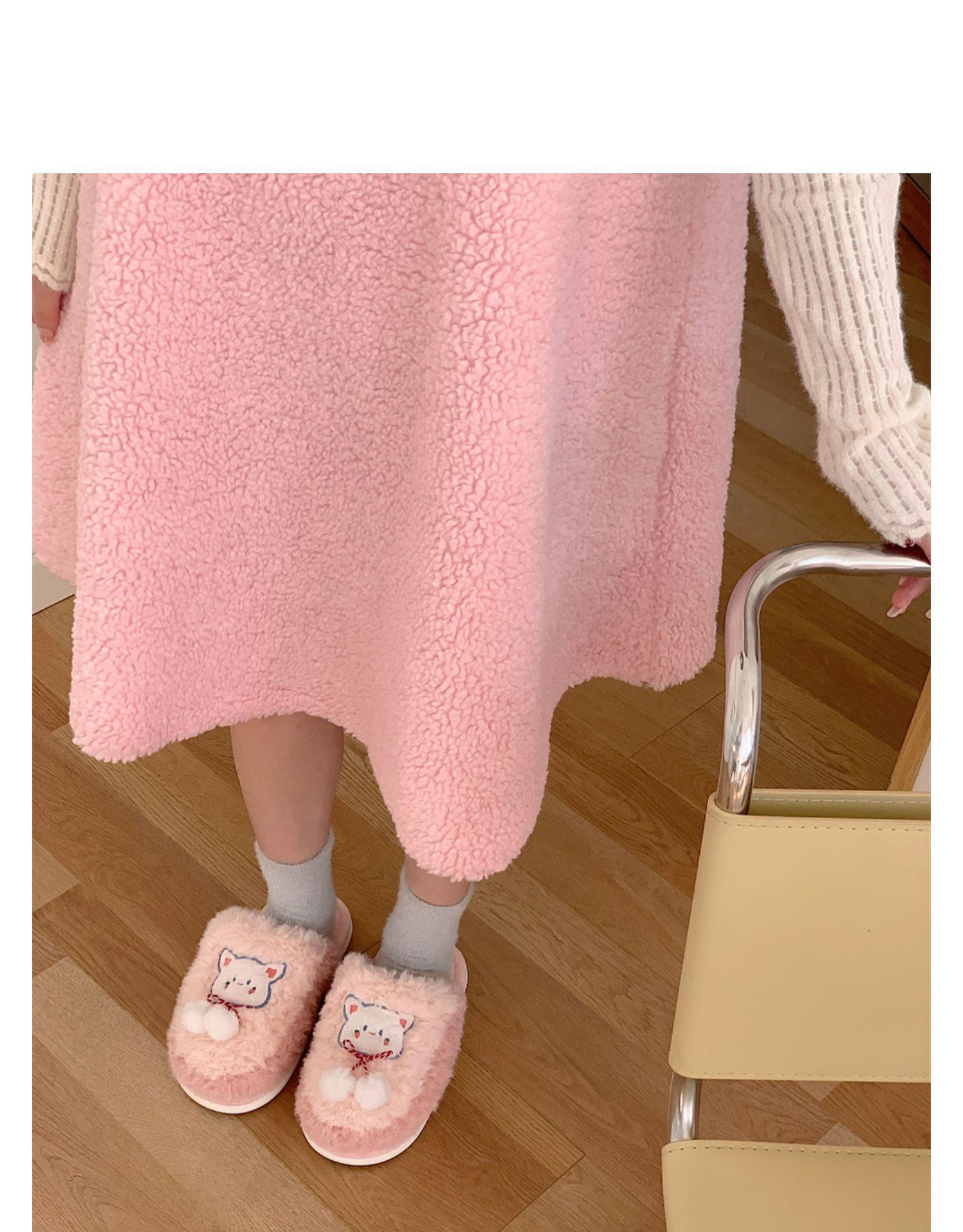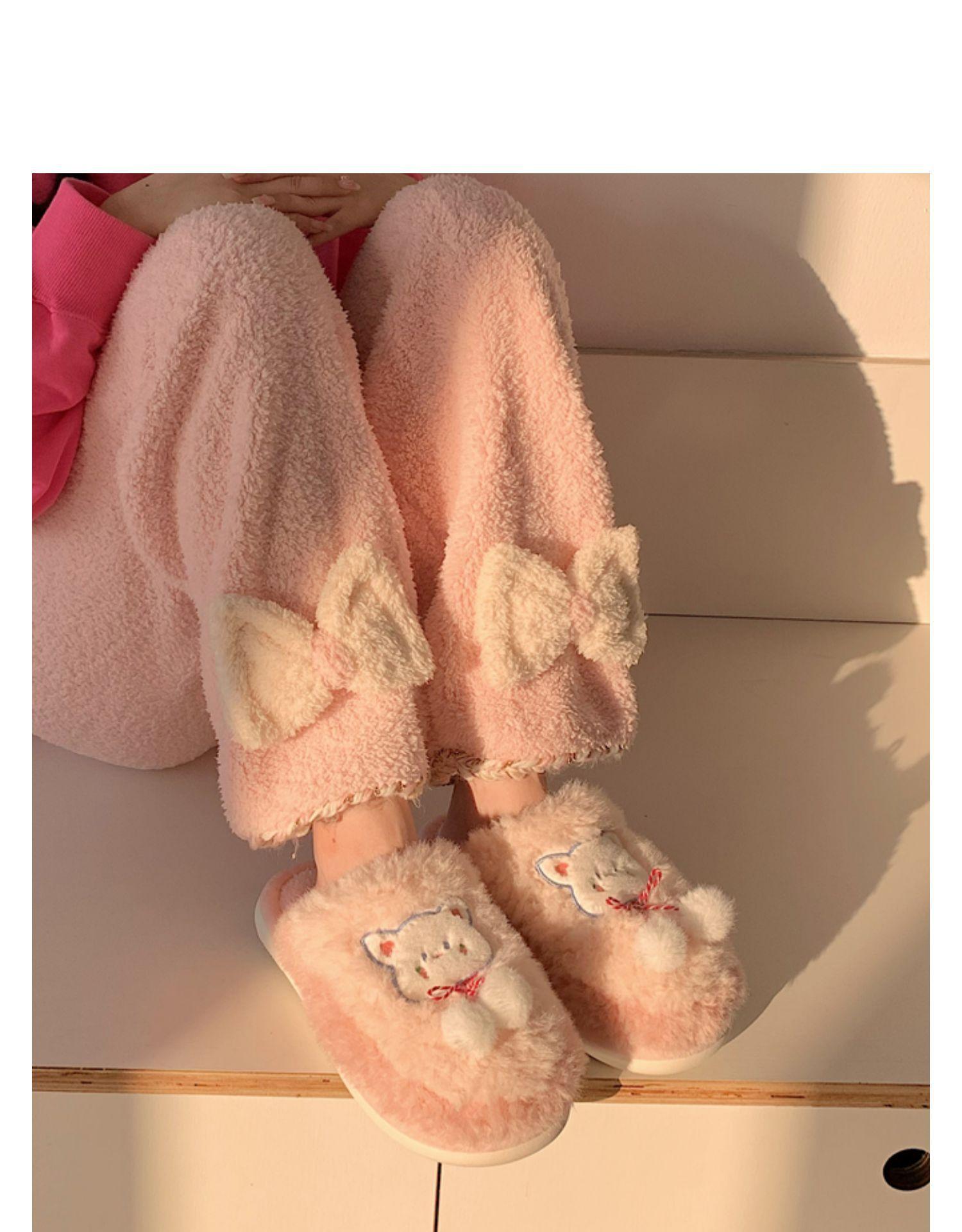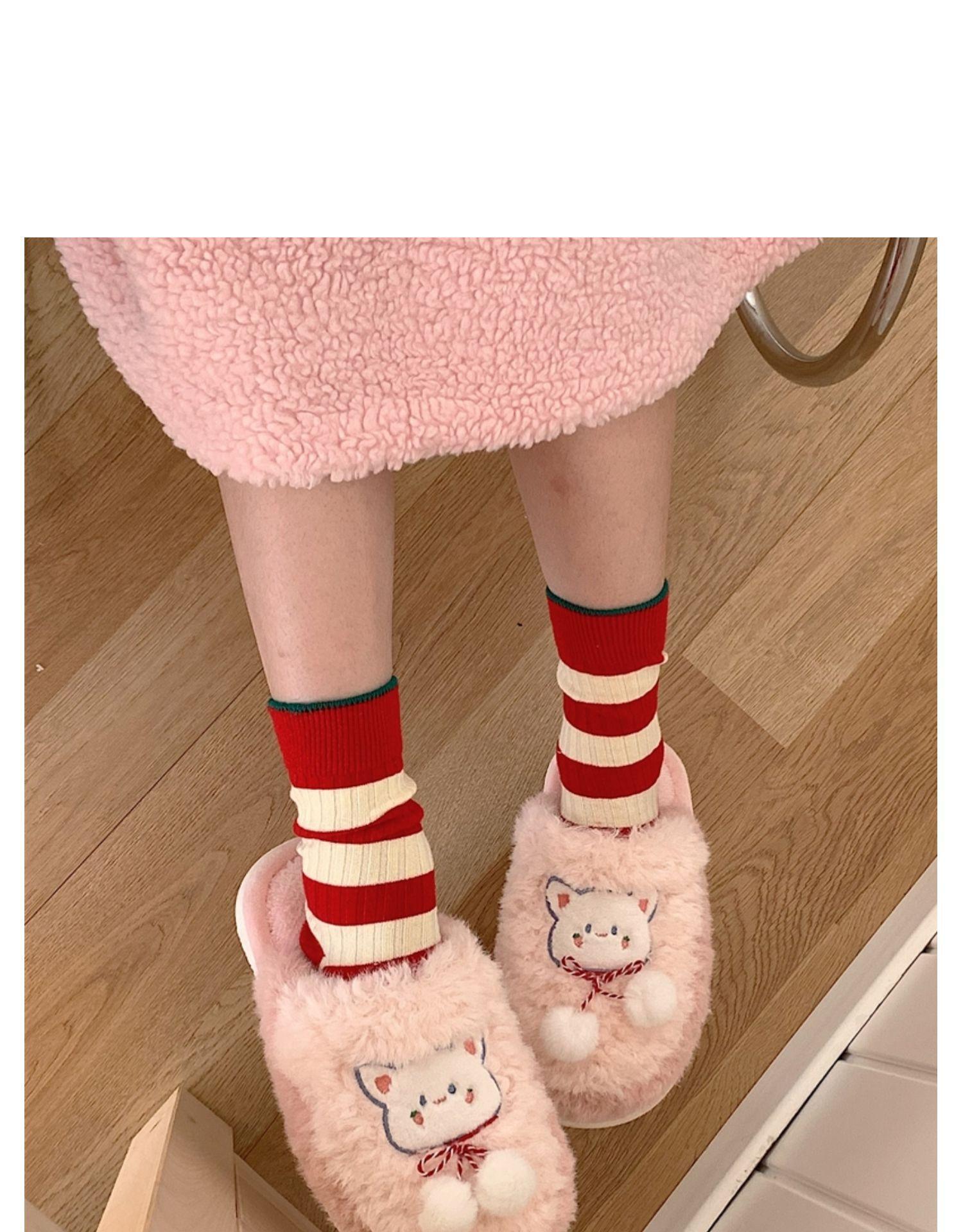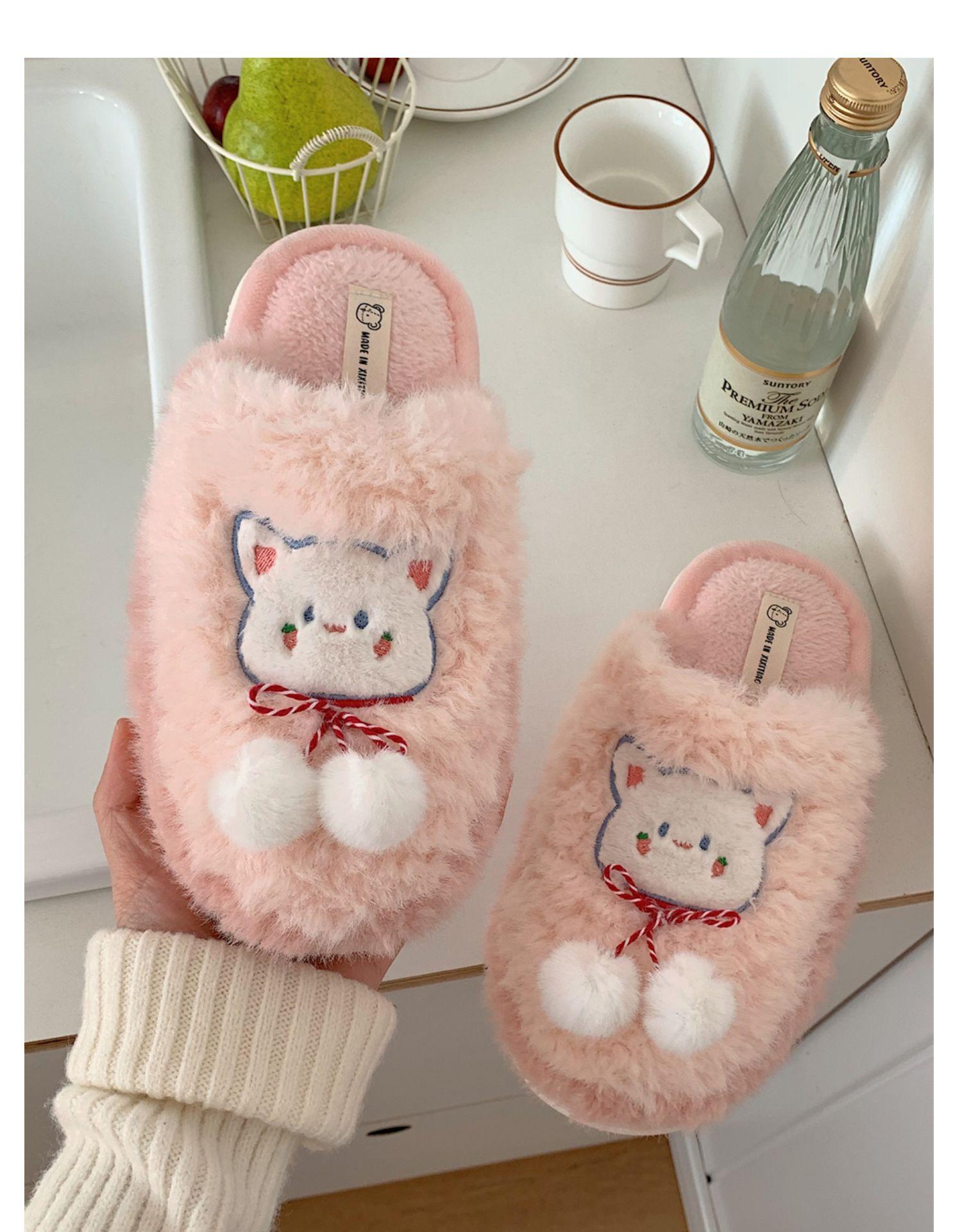 Pantuflas de algodón con punta cerrada y diseño de corazón de niña, cálidas y bonitas, para mujer, de invierno, informales, con dibujos animados, suaves y de fondo grueso, de algodón
