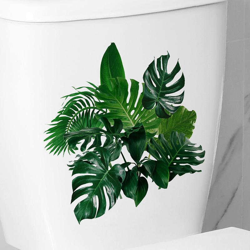 M-216 Pegatinas de pared autoadhesivas con diseño de hojas de tortuga y plantas verdes tropicales para baño, decoración del hogar, venta al por mayor
