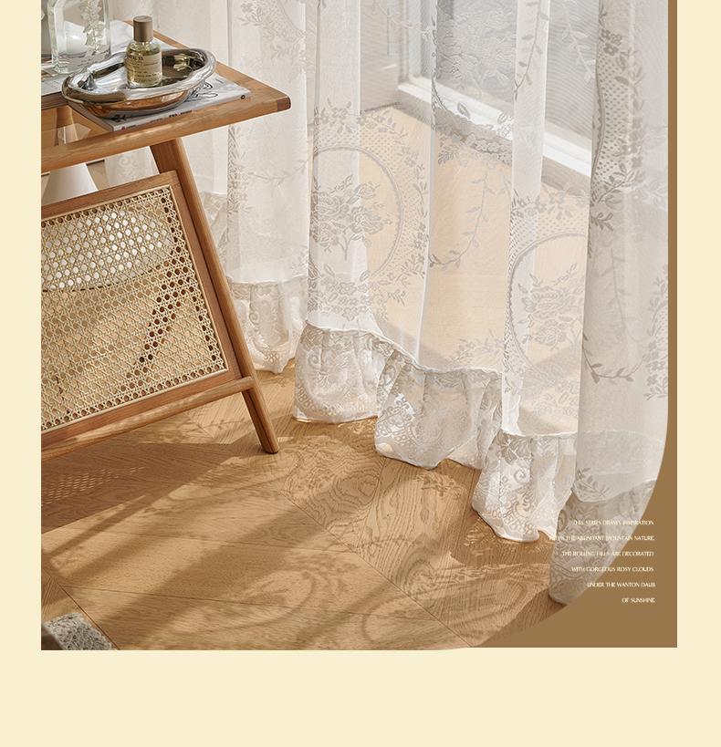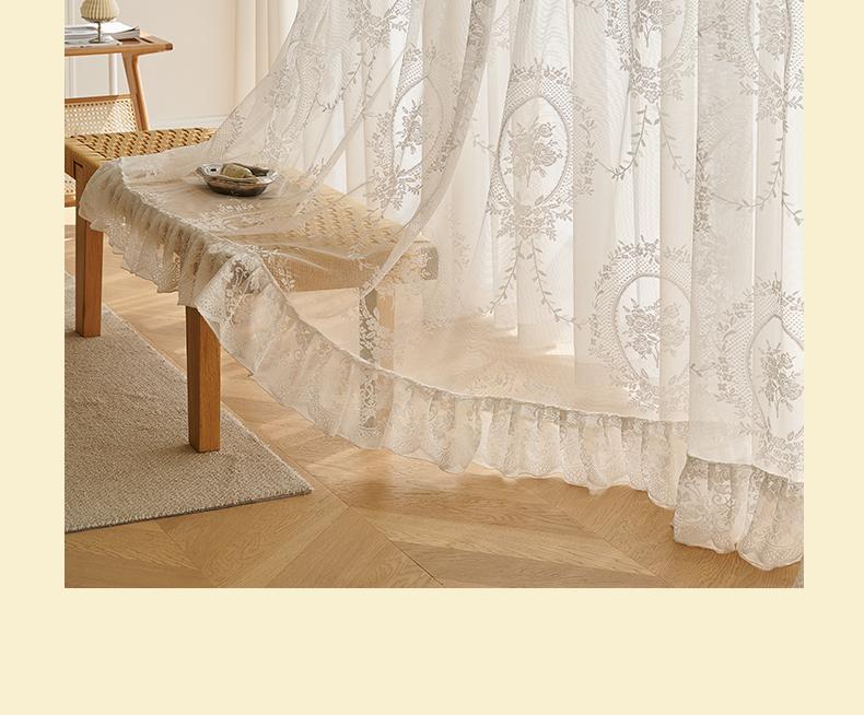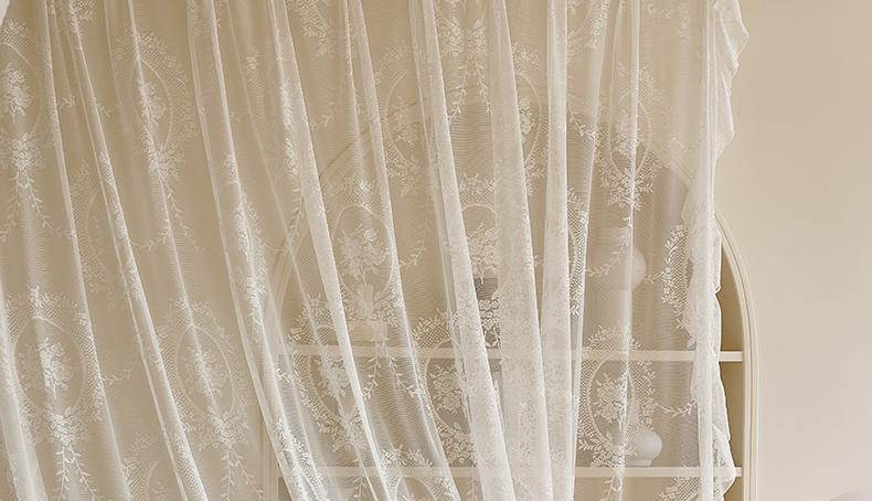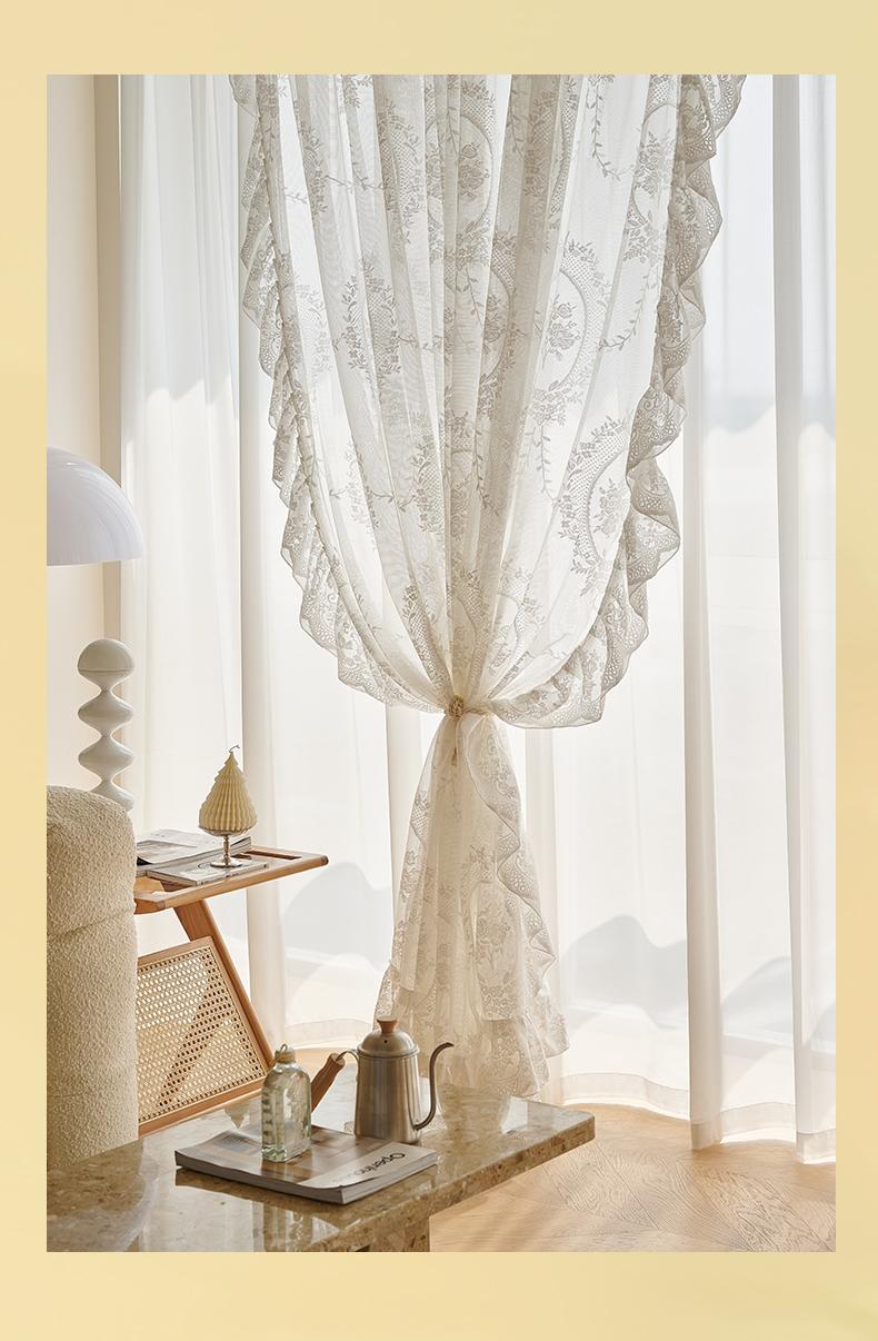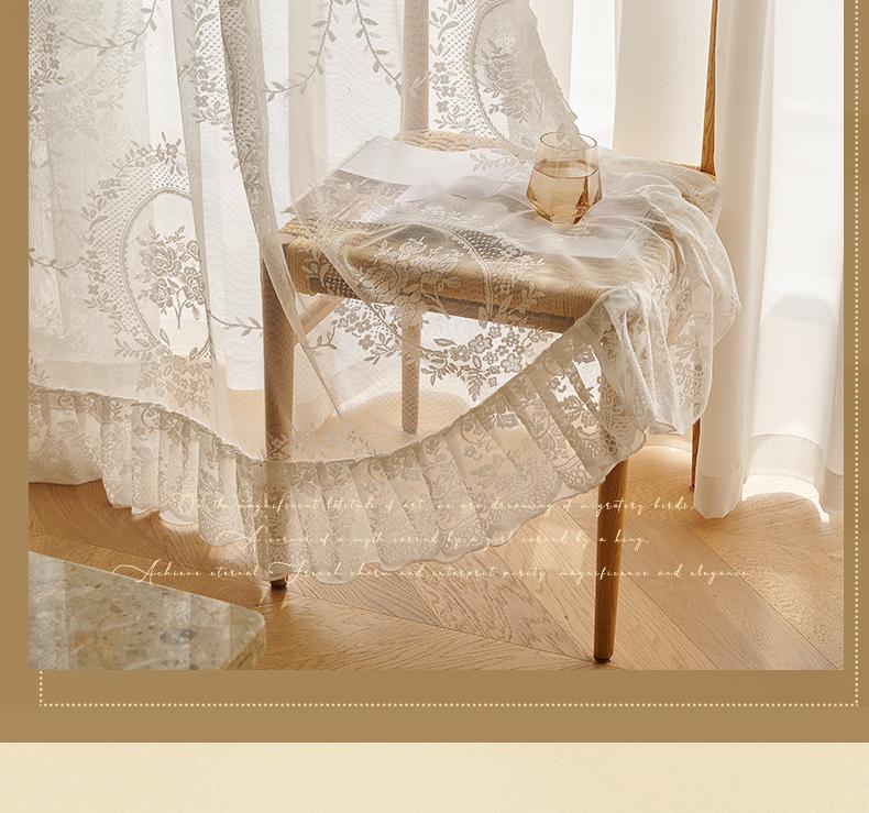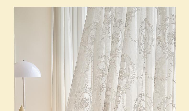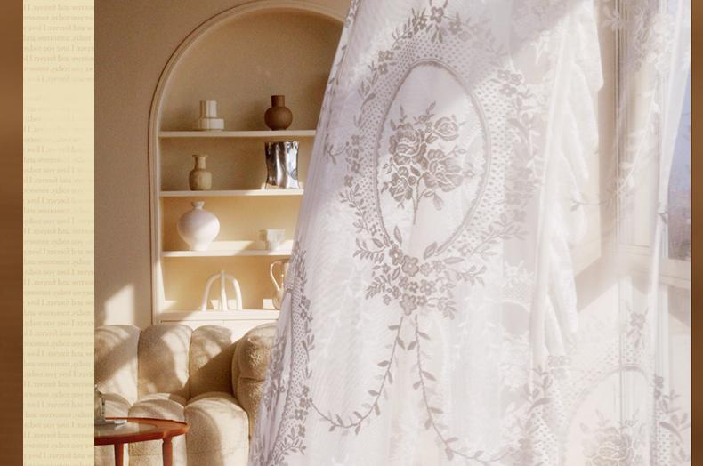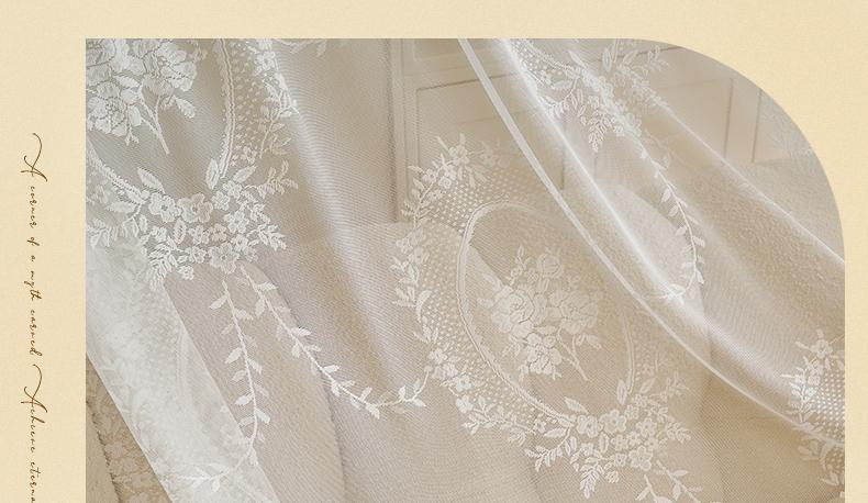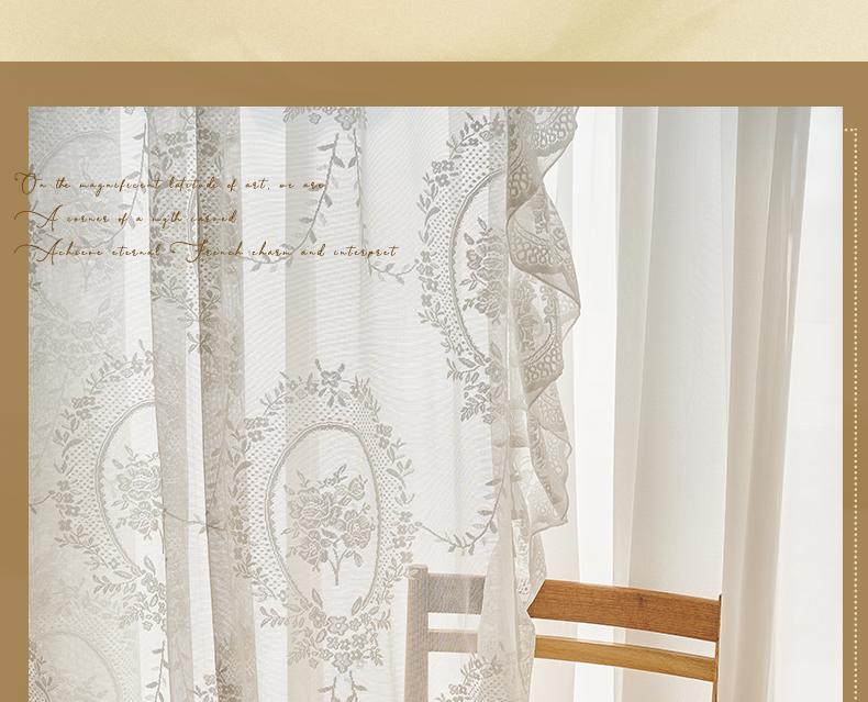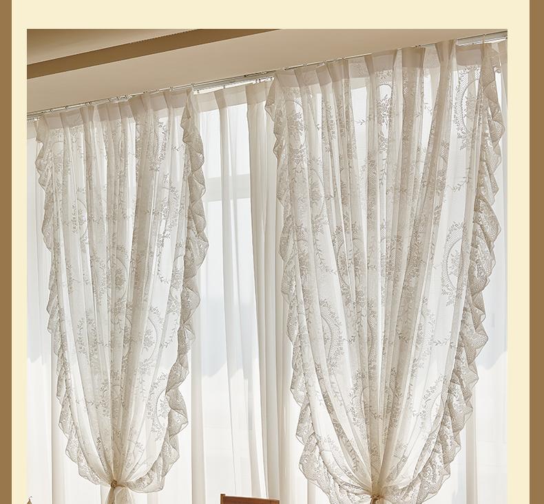 Cortina de encaje estilo francés, transparente e impermeable, de doble gasa, para dormitorio, sala de estar, estilo retro, ligera, de lujo, para ventana
