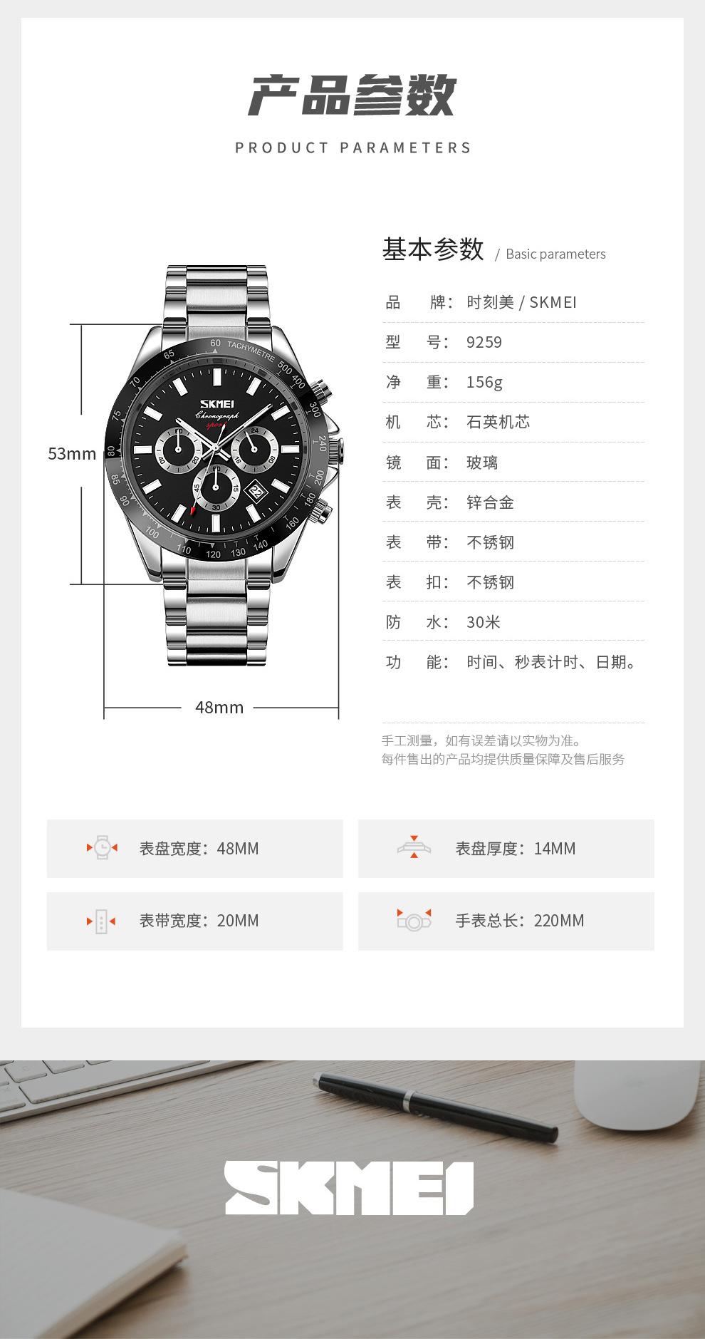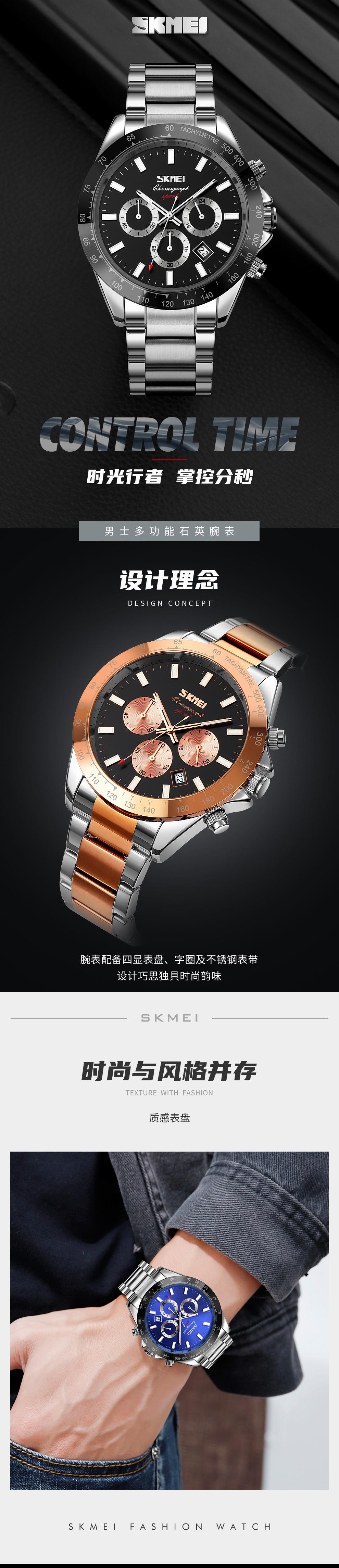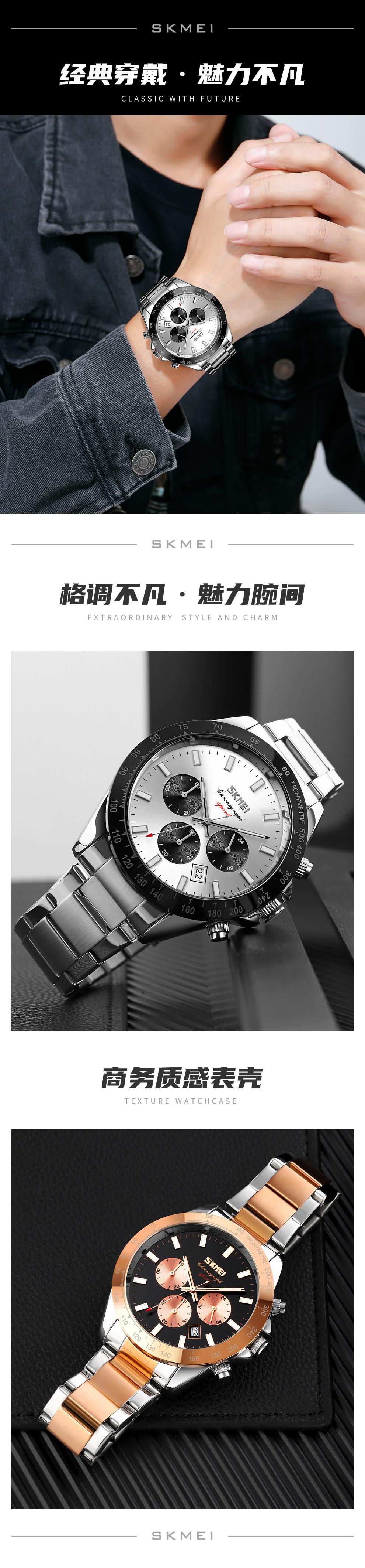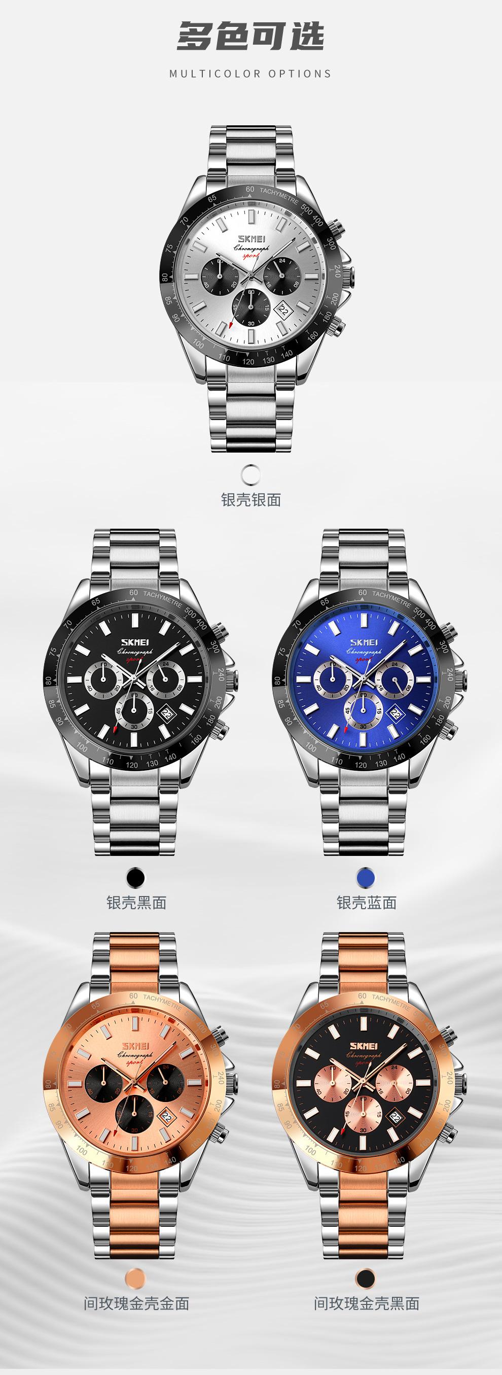 Reloj Skmei para hombre, de selección transfronteriza, moderno, sencillo, resistente al agua, con tres esferas, de cuarzo, venta al por mayor