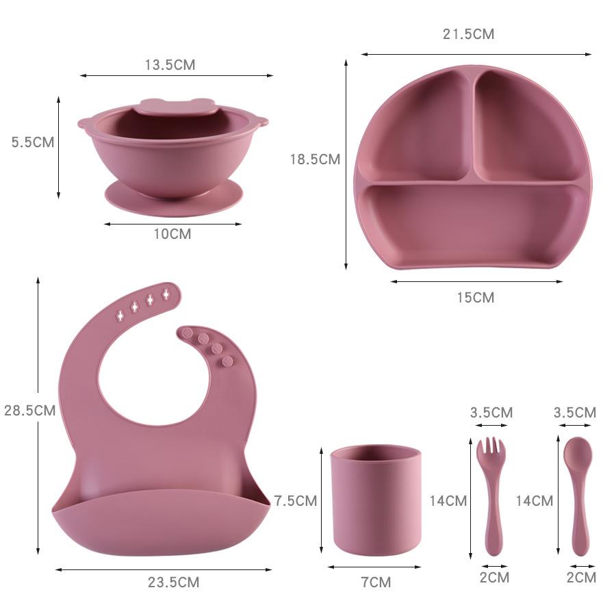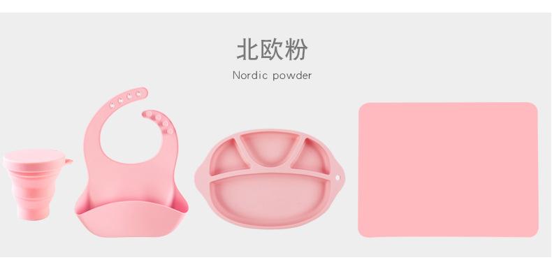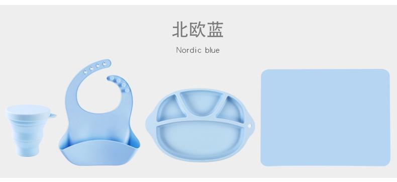Nombre: Juego de vajilla de silicona para niños, plato de cena de silicona para bebé, mantel individual, babero de silicona para niños, taza plegable de silicona