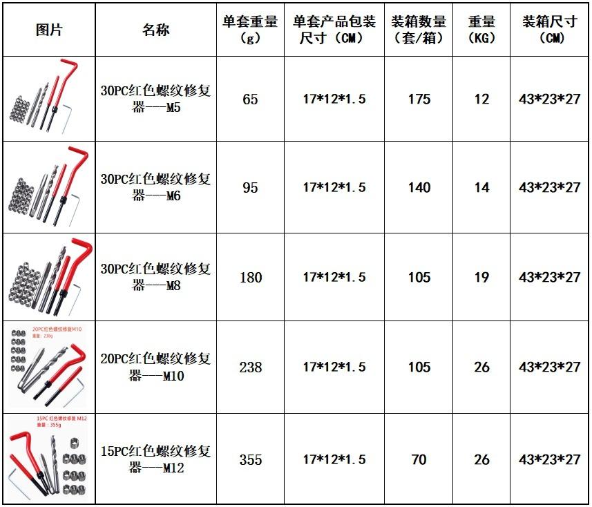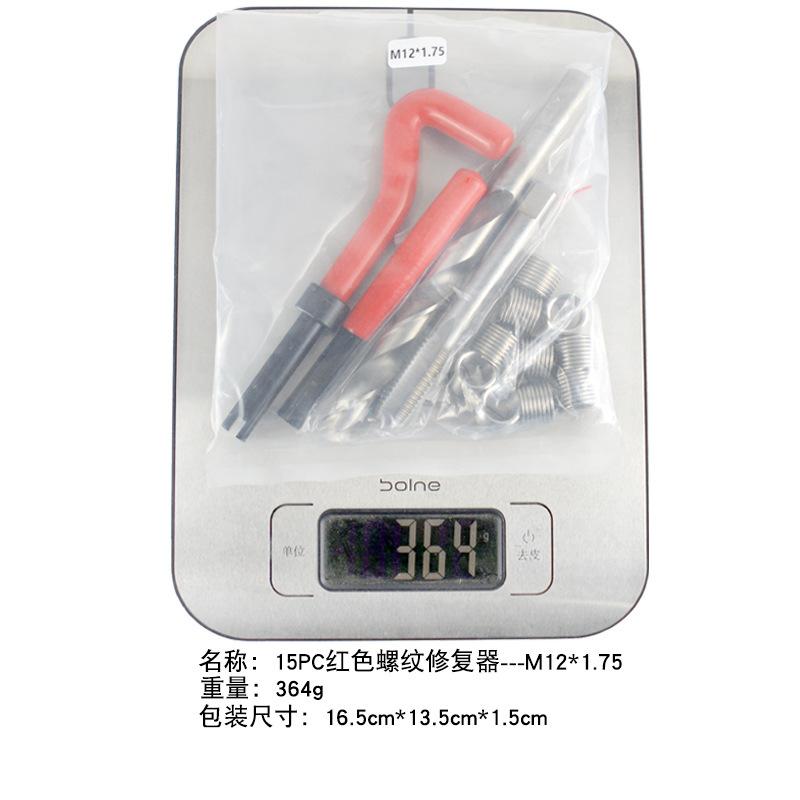 Nombre: Herramienta de reparación de roscas rojas de 15 piezas-M12