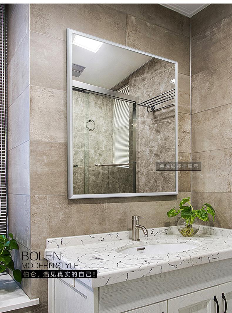Marco de aleación de aluminio + espejo plateado de alta definición de 5 mm (más película a prueba de explosiones)