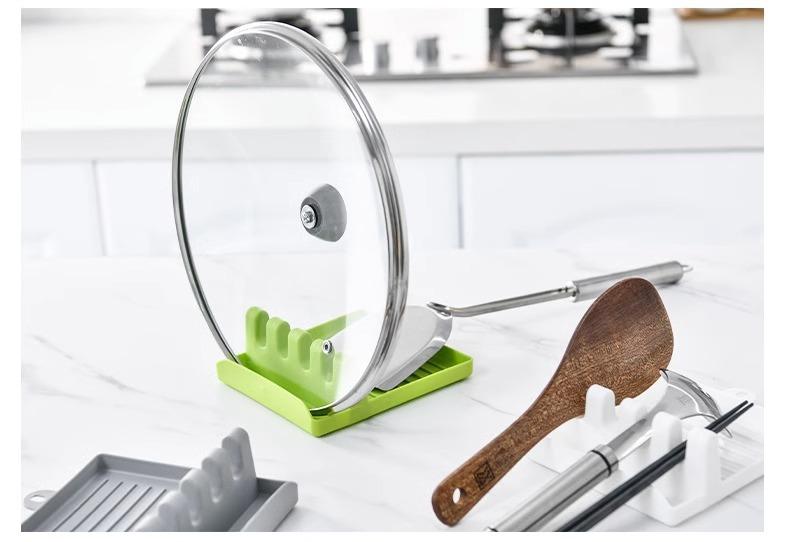 Estante para espátula de cocina, estante de almacenamiento para cucharas, tapete para espátula, estante multifunción para tapas de ollas, estante de almacenamiento